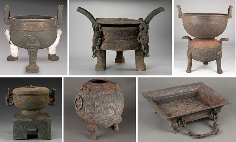 安徽淮南武王墩一号墓出土的铜器(拼版照片) 。