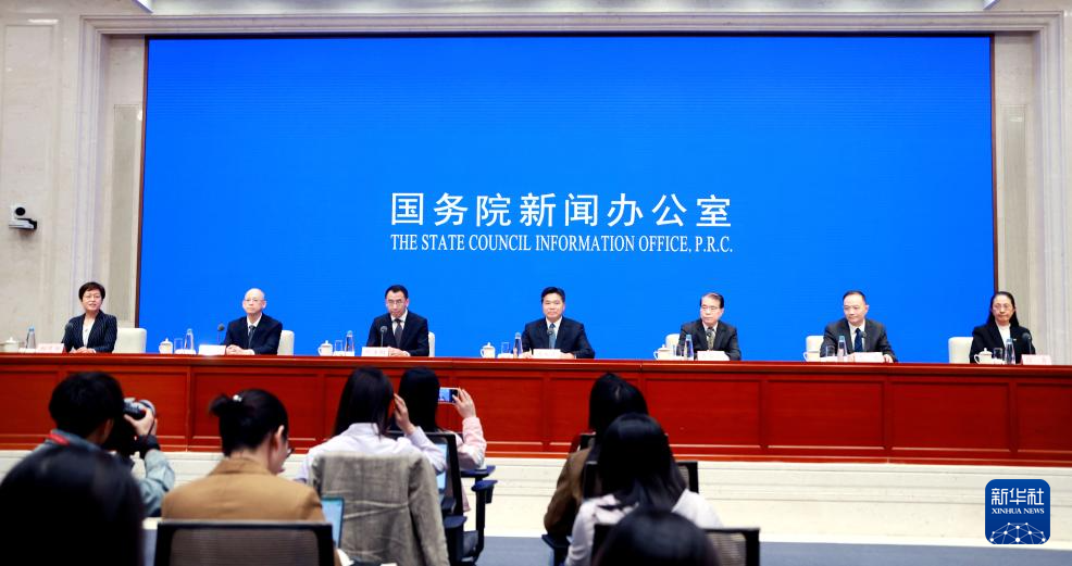4月27日,国务院新闻办公室在北京举行新闻发布会,商务部副部长盛秋平、财政部税政司司长贾荣鄂、文化和旅游部产业发展司司长缪沐阳、海关总署口岸监管司司长夏俊、税务总局货物和劳务税司司长谢文、中国民航局运输司司长徐青介绍优化离境退税政策扩大入境消费有关情况,并答记者问。新华社记者 潘旭 摄