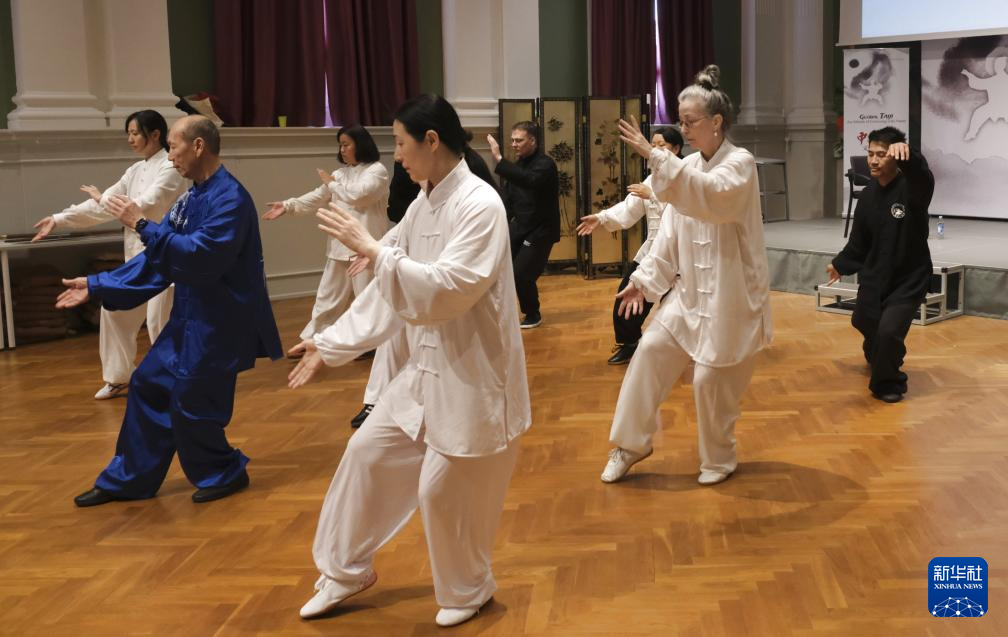 4月26日,太极爱好者在罗马尼亚布加勒斯特参加“世界太极日”活动。