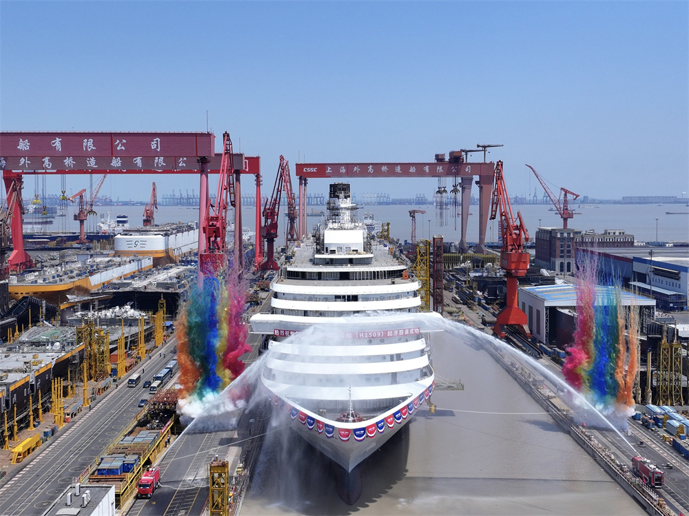 第二艘国产大型邮轮"爱达·花城号"完成坞内起浮