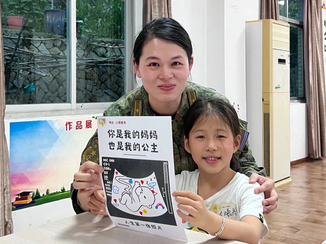 活动以“泡泡糖粘哪里”游戏拉开序幕,军娃们在肢体互动与团队协作中迅速活跃起来。随后,心理小分队成员用启蒙绘本《我从哪里来》,以童趣语言和生动图画,科学讲解胎儿成长历程,解答军娃对生命起源的疑惑。现场还设置实践与手工环节,军娃们在医护人员指导下,使用仿真婴儿模型学习抱娃、冲泡奶粉、换尿布;在“我人生中第一张照片”手工活动中,他们描摹B超图,添上爱心等图案,直观感受生命孕育的温情。此次活动通过“认知—体验—感恩”的沉浸式课堂,让军娃理解生命的珍贵、体悟母爱的伟大。这一创新形式,成为军地协作服务军人家庭的生动实践。
