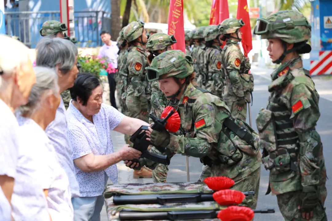 点验大会上,“八姐妹炮班”老民兵给新一代女民兵授枪的仪式格外严肃、庄重。这不仅是简单的武器交接,更是跨越时空的精神传承与使命接力。新时代女民兵从前辈手中郑重接过钢枪,是对峥嵘岁月的致敬与铭记,也是西岛女民兵“爱岛、尚武、奉献”的精神赓续,更是新时代守护海疆建设美好家园的使命传承。新时代的西岛女民兵,不仅是祖国南海前哨的守护者,“八姐妹炮班”精神的传承者,更是海岛女子民兵风采的发扬者。从练兵备战到应急救援,从国防宣传到志愿服务,从生态保护到乡村振兴,都有她们的身影。西岛女民兵已然成为守护海岛安宁、促进地方经济繁荣的“钢铁玫瑰”。