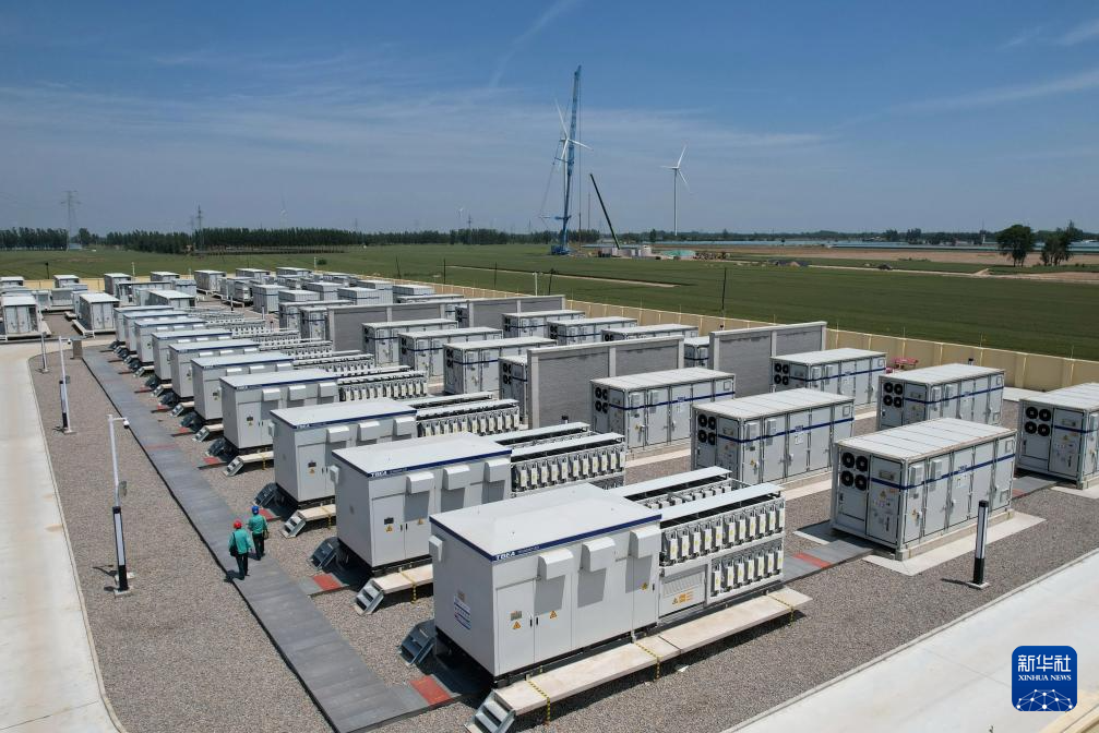 5月15日拍摄的故城县军屯镇牛庄村附近的储能电站(无人机照片)。新华社记者 杨世尧 摄