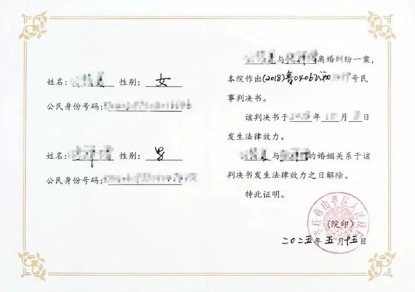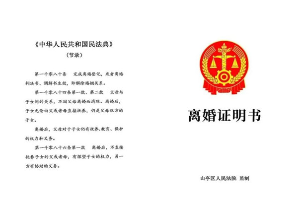 枣庄市山亭区人民法院发出首份《离婚证明书》