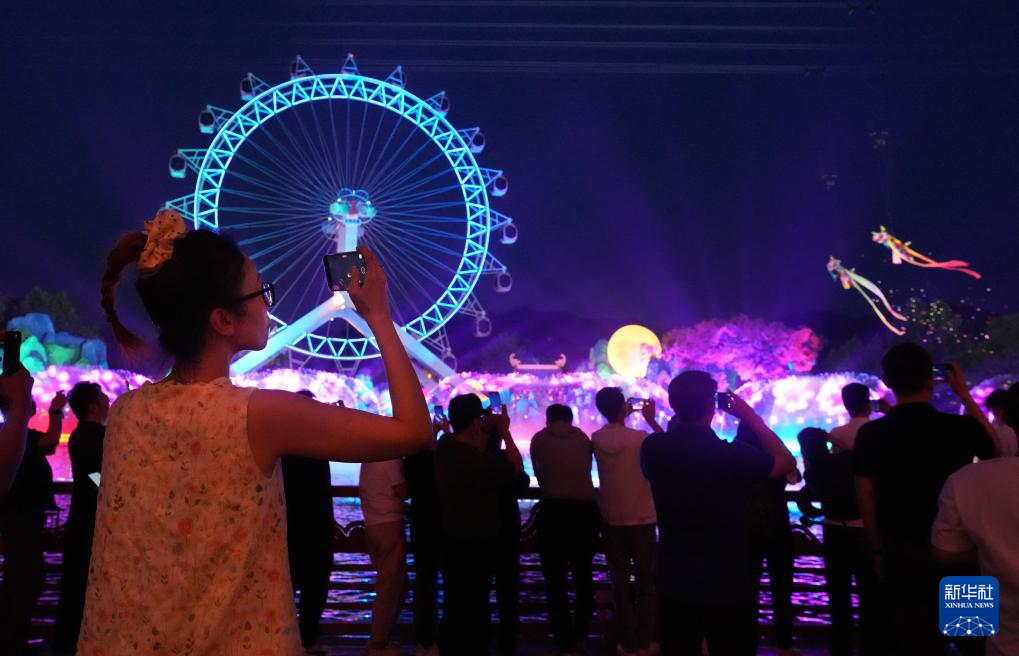 5月26日,人们在安吉灵峰街道一个夜游景区观看国风表演。新华社记者 翁忻旸 摄