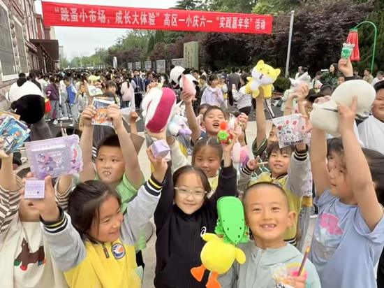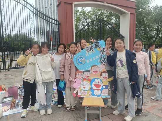 小学生们穿梭在摊位间,认真挑选着自己心仪的物品,讨价还价的声音此起彼伏。除了常规交易,各摊位还隐藏着许多花式玩法:“套圈抽奖”“玩具置换”“满减活动”等趣味设计,将活动推向高潮!(丛雨亭 王瑜)
