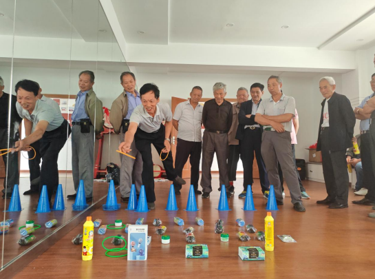 在趣味互动游戏区域,老兵们精神矍铄,现场洋溢着节日的喜庆氛围。首个环节“端午射五毒”趣味十足,老兵们手持沙包瞄准象征“五毒”的标靶,精准投掷,寓意驱除病害、祈愿健康。“欢乐夹粽子”环节中,大家用筷子夹起小巧的“粽子”来回传递,既考验手眼协调,又唤起对传统习俗的回忆。“欢乐套圈”环节中,老兵们身手矫健,套中奖品时掌声笑声不断,现场其乐融融。在手工制作区域,志愿者向大家介绍了屈原的爱国故事、端午挂艾草、佩香囊等传统习俗的由来,加深了退役老兵及家属对节日文化内涵的理解。随后包粽子环节,大家娴熟地展示折叶、填米、捆绳等技巧,年轻人边学边做,在沟通交流中传承手艺。在制作养生手串DIY环节,退役老兵及家属用五彩珠子和艾草香料制作端午主题手串,寓意驱邪祈福,表达对生活的美好祝愿。