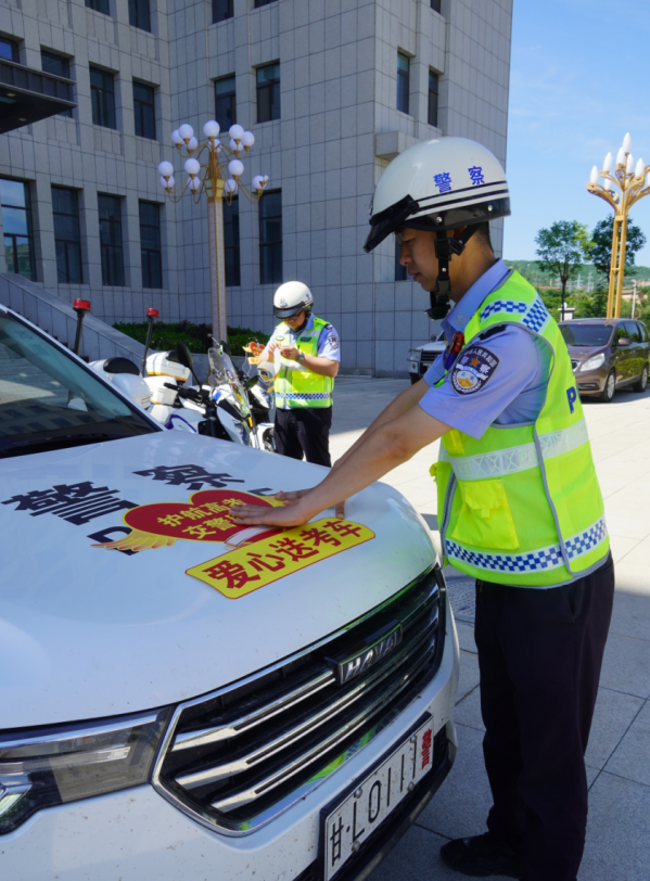 该局在考点设立快骑护考队,并在警车上粘贴“护航高考”的暖心护考贴,遇有考生有遗忘准考证、身份证或其他紧急情况向民警求助时,可提供紧急救援服务,对送考车辆发生故障、交通事故的,可迅速出警、快速处理,帮助联系车辆转送考生或派警车送达考场,全力保障考生安全出行、及时应考。(崇信县公安局供稿)