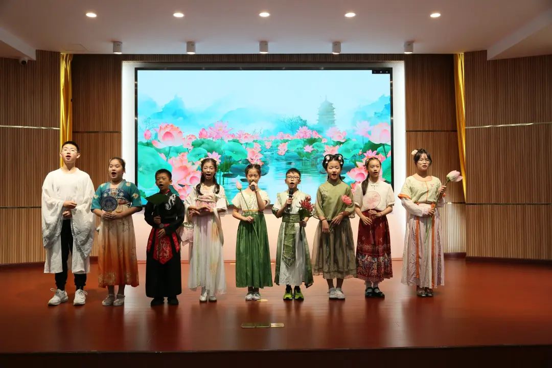 “荷韵诗词”环节,陵园志愿红色宣讲员深情朗诵《离骚》《赠荷花》《爱莲说》《采莲曲》《晓出净慈寺送林子方》等经典诗篇。