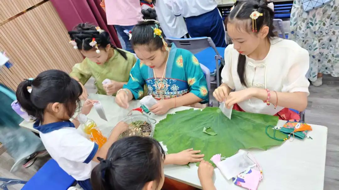 “端午荷风手作体验” 环节,大家以艾草、干荷叶等草药制作端午香囊,并在“烈士寄语卡”上写下感悟。