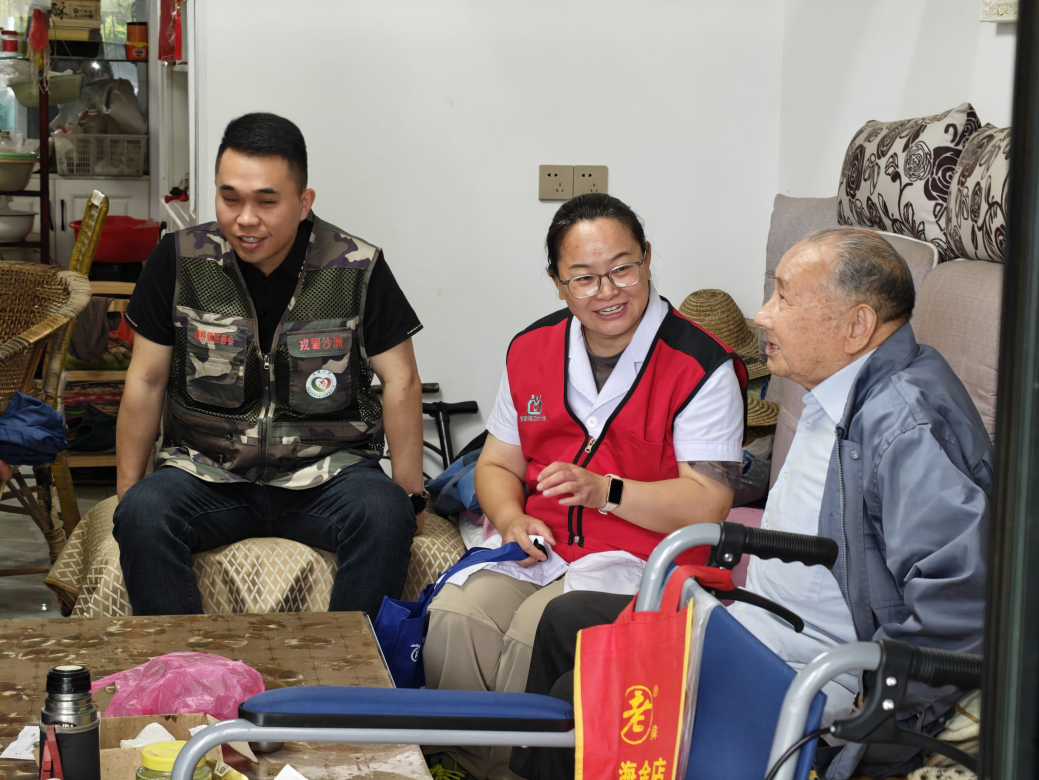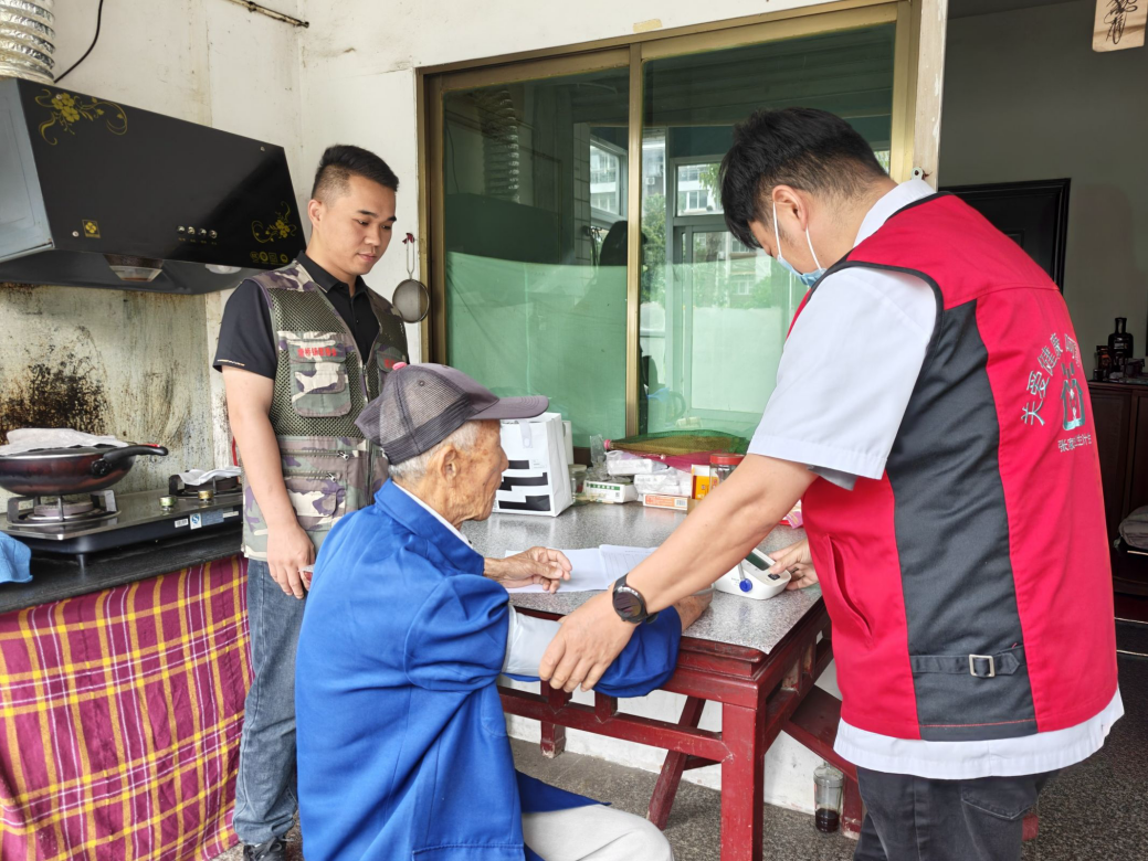 “顾爷爷,前段时间做了白内障手术后,最近感觉怎么样?”社区医生高峰一边做着测量血压的准备工作,一边询问着顾金兰爷爷。“你血压有点偏高,明天再测一测,餐后血糖还可以,这个雨天,你尽量减少外出啊”。在做好一些常规检查后,高峰又再三叮嘱了几句。据悉,顾金兰是一名90岁的农村籍退役士兵,这次上门健康随访,是张家港市高新区(塘桥镇)部门联动组建拥军健康小分队,实施健康守护方案后开展的常态化随访。