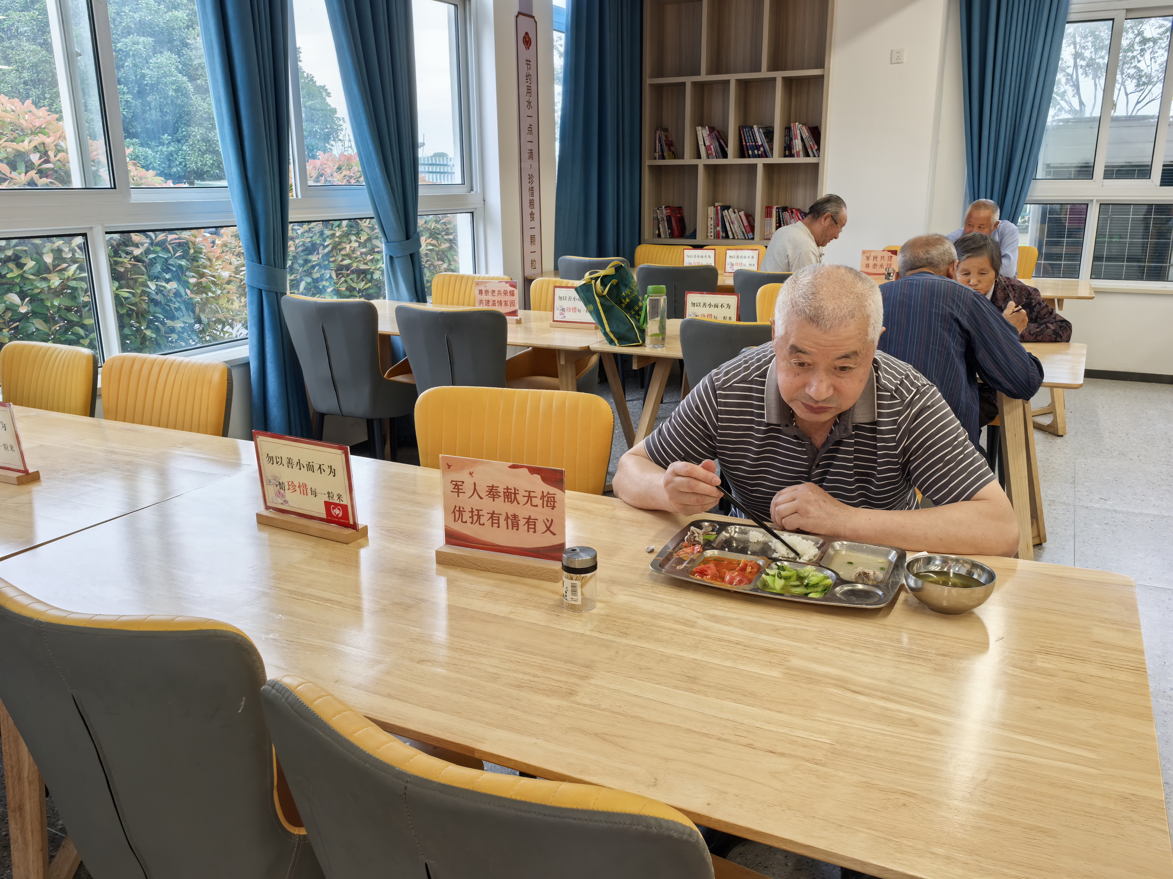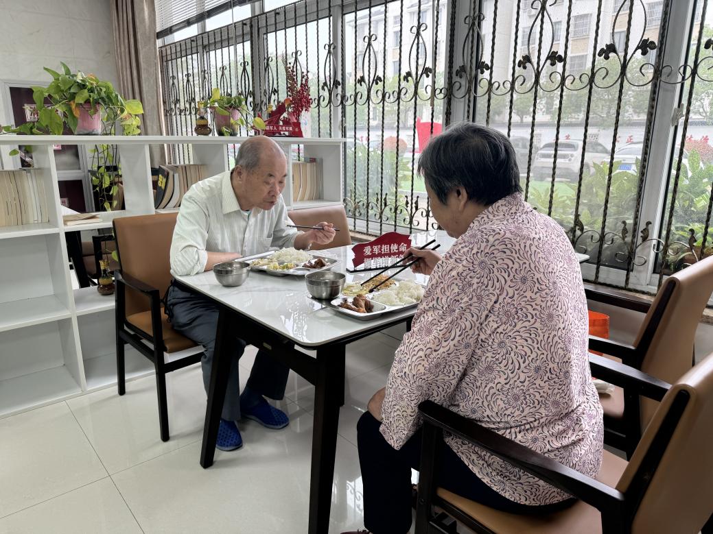 “我这辈子和食堂结下了不解之缘,当兵的时候,在部队食堂用餐;工作的时候,在单位食堂用餐;没想到,退休后,还可以在社区食堂用餐。”在镇中社区退役军人康养服务站,退役老兵陈老伯说起他的食堂用餐经历,不禁开起了玩笑。“这个社区里开设了餐厅服务,确实解决了我们老年人的就餐问题,同时,有了这个拥军优惠政策,我作为一名退役军人,感到有一种归属感,希望政府支持好这个政策,要一直坚持下去。”走进“老兵食堂”,除了舒适的就餐环境,还有触手可及的双拥氛围,餐桌上的拥军座牌、夏天纳凉的拥军小扇等。