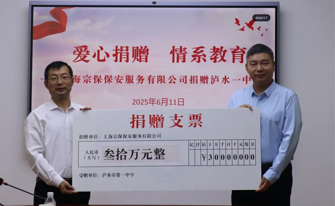 仪式上,上海宗保保安服务有限公司与泸水一中共同签署了捐资助学项目的协议书,并进行捐赠,以支持学校的教育事业。同时,泸水一中为上海宗保保安服务有限公司颁发了锦旗,以表达对其慷慨捐赠的感谢。