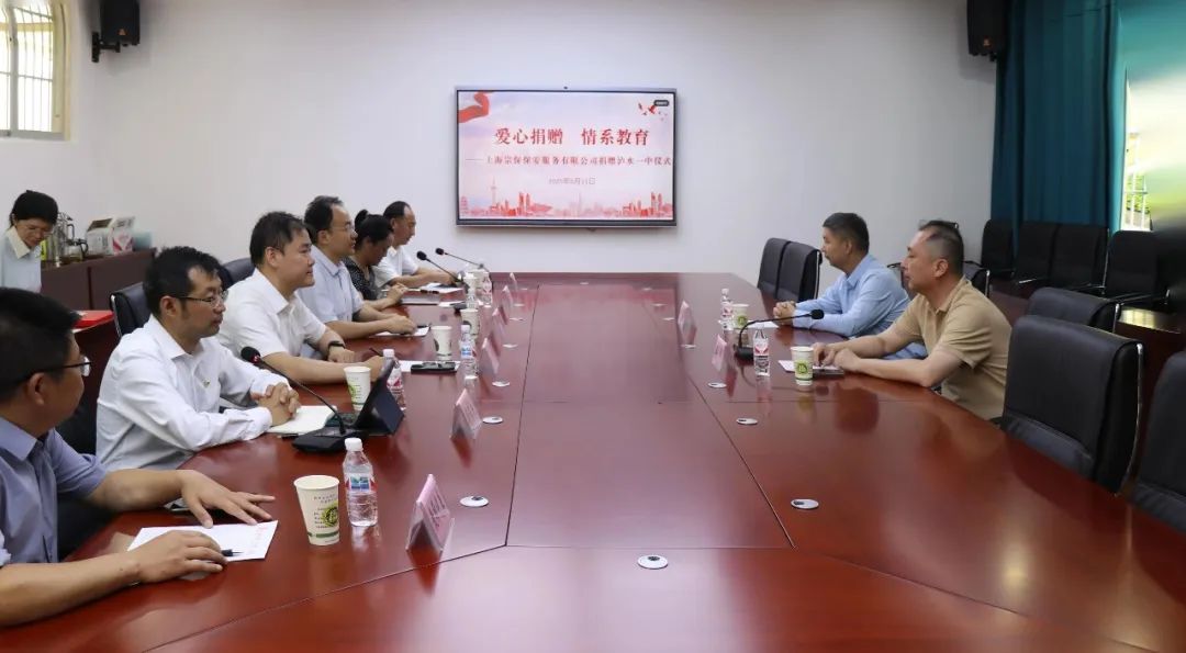 近日,上海市“最美退役军人”集体、浦东新区军创企业上海宗保保安服务有限公司董事长王耀一行赴云南省怒江州泸水市第一中学开展助学活动。怒江州委副秘书长孔伟,泸水市委常委、副市长于丹,泸水市教体局党组书记、局长,校党委书记和文丽等、上海支教教师代表参加本次活动。