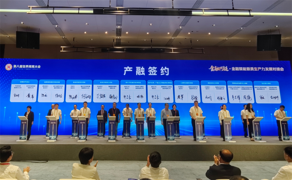 6月18日,第八届世界闽商大会在福州召开。作为第八届世界闽商大会暨第二十三届海创会的重要组成部分,以“金融兴链·金融赋能新质生产力发展”为主题的金融赋能新质生产力发展对接会同期举办。本次对接会旨在搭建金融资本与科技产业深度融合平台,推动金融服务实体经济高质量发展。现场协调闽商代表、项目代表、单位代表集中签约,搭建金融资本与科技产业深度融合的桥梁。
