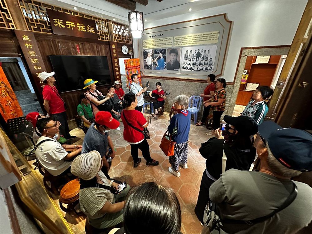 东园社区以活动为纽带,深化两岸同胞情感交融与文化共鸣。围绕“东园本地文化”与“幸福东园”主题,策划两岸融合系列活动:包括以南音为核心的音乐活动,用乡音连接两岸心灵;“旧物改造”等协作活动增进居民了解与情谊;针对社区老龄化特点举办的“三代同堂趣味运动会”等,营造温馨包容的社区氛围。尤为突出的是南音艺术的创新传承:台湾青年音乐人深入社区,与本地“南音复兴社”全年龄层成员深度交流,共同创作出融合现代流行元素的南音新作。这首作品在保留传统韵味的同时注入时代活力,有效拉近了古老艺术与年轻群体的距离,让绵长乡音焕发新生,成为两岸文化创新融合的生动注脚。