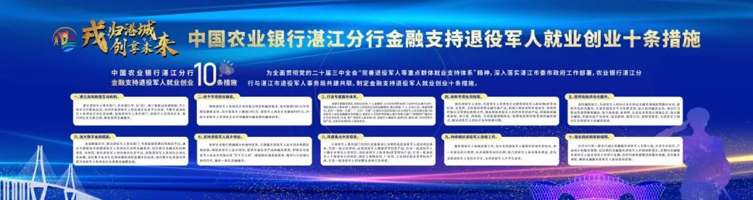 启动仪式上,湛江市退役军人事务局与中国农业银行湛江分行签订战略合作协议;(县、市)区退役军人事务局与中国农业银行湛江分行各支行签订战略合作协议;中国农业银行湛江分行金融支持退役军人就业创业十条措施发布。