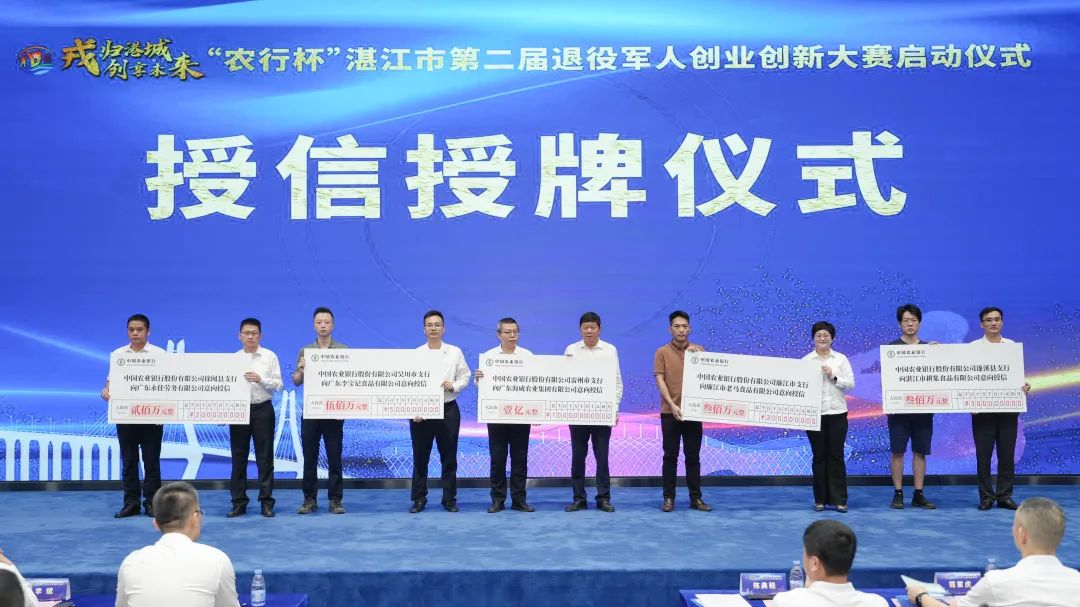 活动还举行了湛江军创金融授信授牌仪式,中国农业银行湛江分行现场向11家企业授信共计15500万元;第二届湛江市退役军人创业创新大赛导师聘任仪式,12位导师获聘书。(湛江市退役军人事务局)