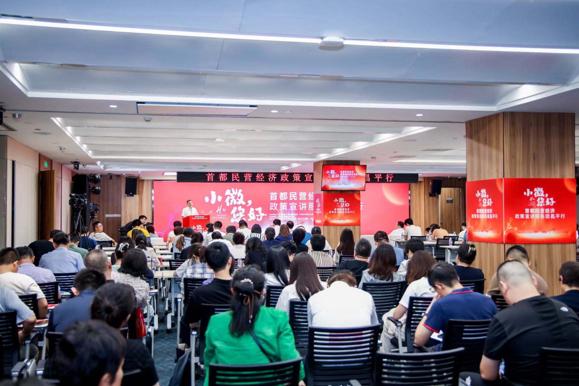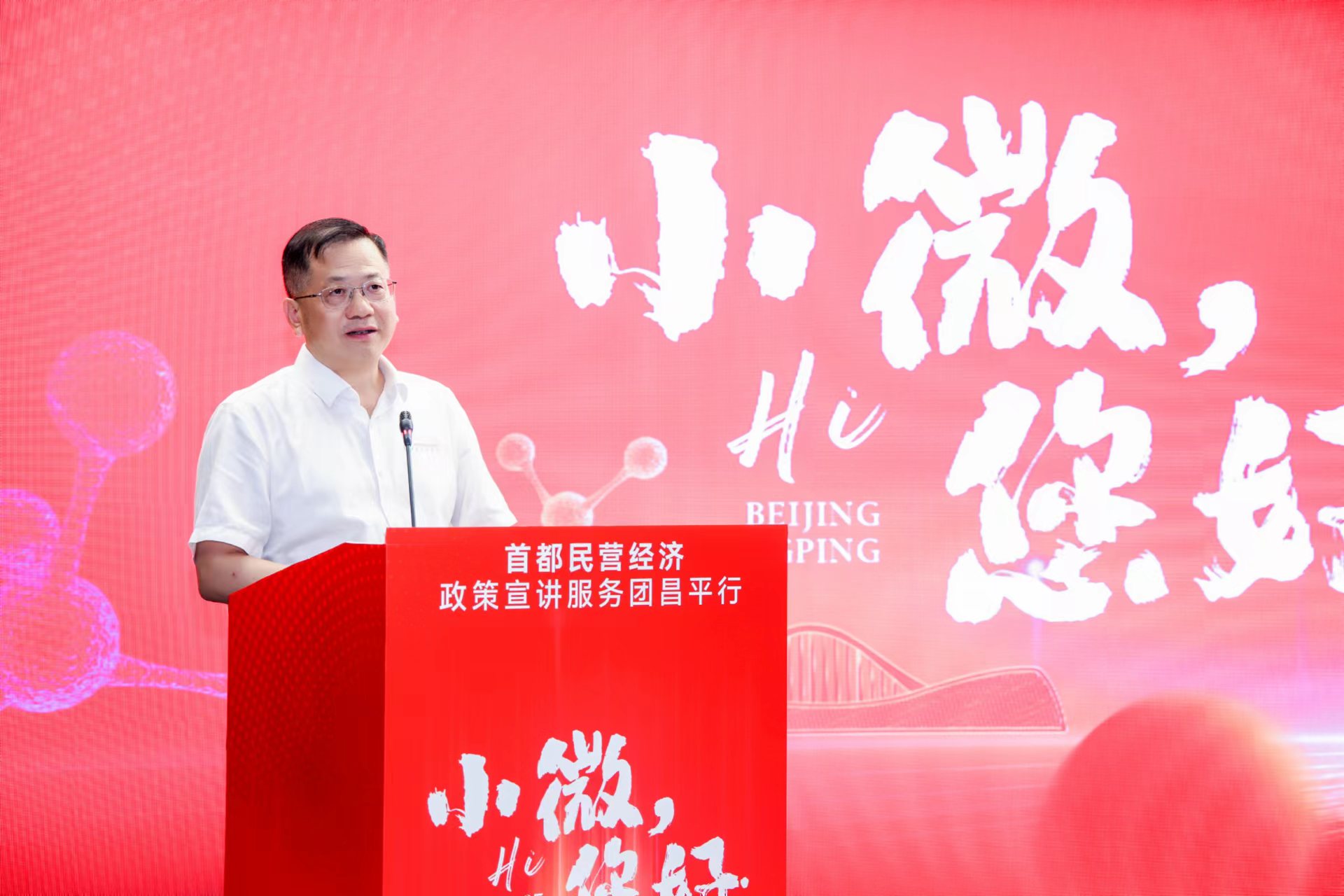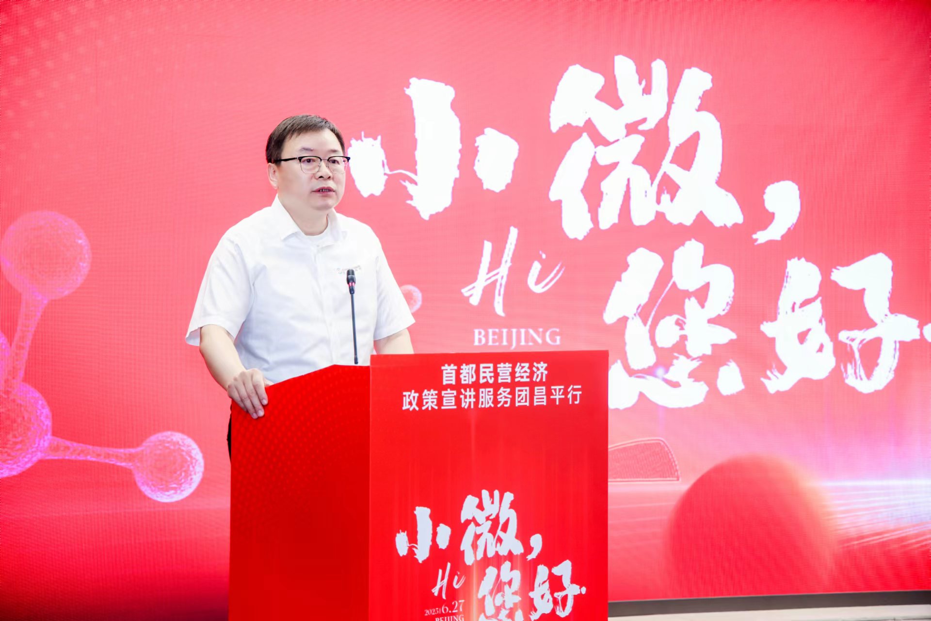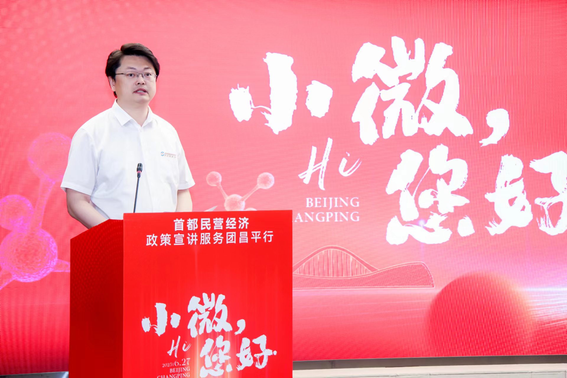 6月27日,由北京市工商联、市发展改革委、市经济和信息化局、昌平区人民政府、微博党委联合主办的“小微,您好”首都民营经济政策宣讲服务团昌平行活动在昌平区中关村生命科学园举办。北京市委统战部副部长、市工商联党组书记严卫群,昌平区委副书记、区长、未来科学城管委会主任刘晓东,市发展改革委二级巡视员王志伟,市经济和信息化局二级巡视员张占锋出席会议并致辞。北京市工商联党组成员杨靖国,昌平区政府副区长、区工商联主席马春秀,未来科学城管委会副主任、昌平区政府副区长赵仕伟,微博党委委员、微博执行总编辑陈福云出席会议。