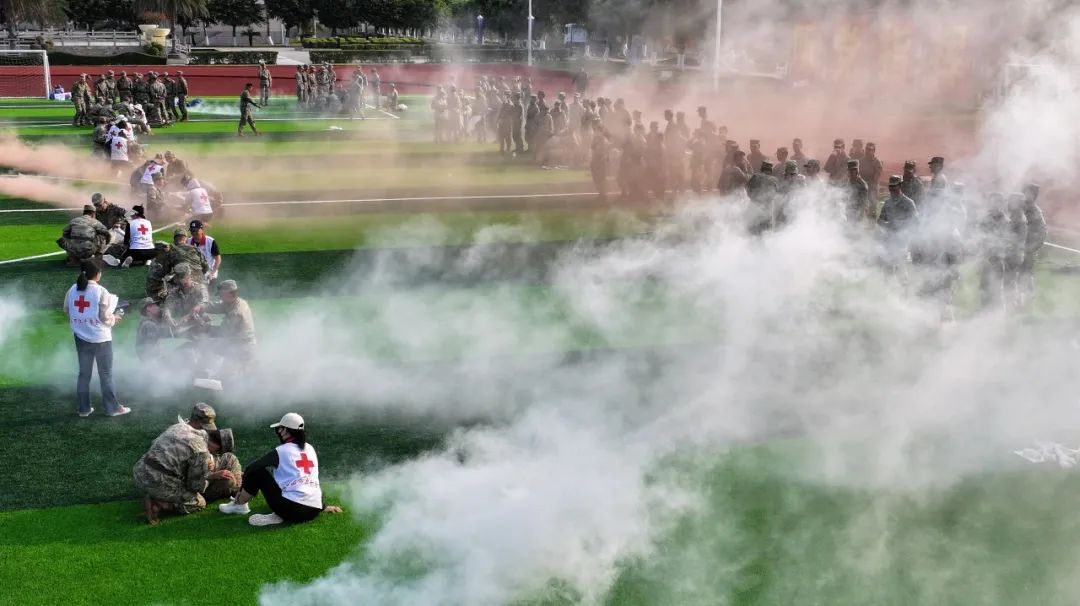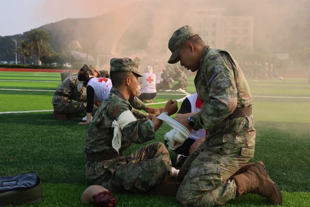 在情景模拟演练环节,参训官兵分组处置烧烫伤、开放性骨折、头部枪伤等10余类战场常见伤情处置科目。借助高仿真教具,官兵们反复练习三角巾包扎、夹板固定、AED除颤等实操训练,现场气氛紧张有序。“伤员左肩贯穿伤,立即采用加压包扎法!”“CPR按压注意保持节奏!”伴随着讲师此起彼伏的指令声,训练场上官兵们动作干净利落,每一个急救步骤都精准到位,整个训练过程紧张有序却又配合默契。