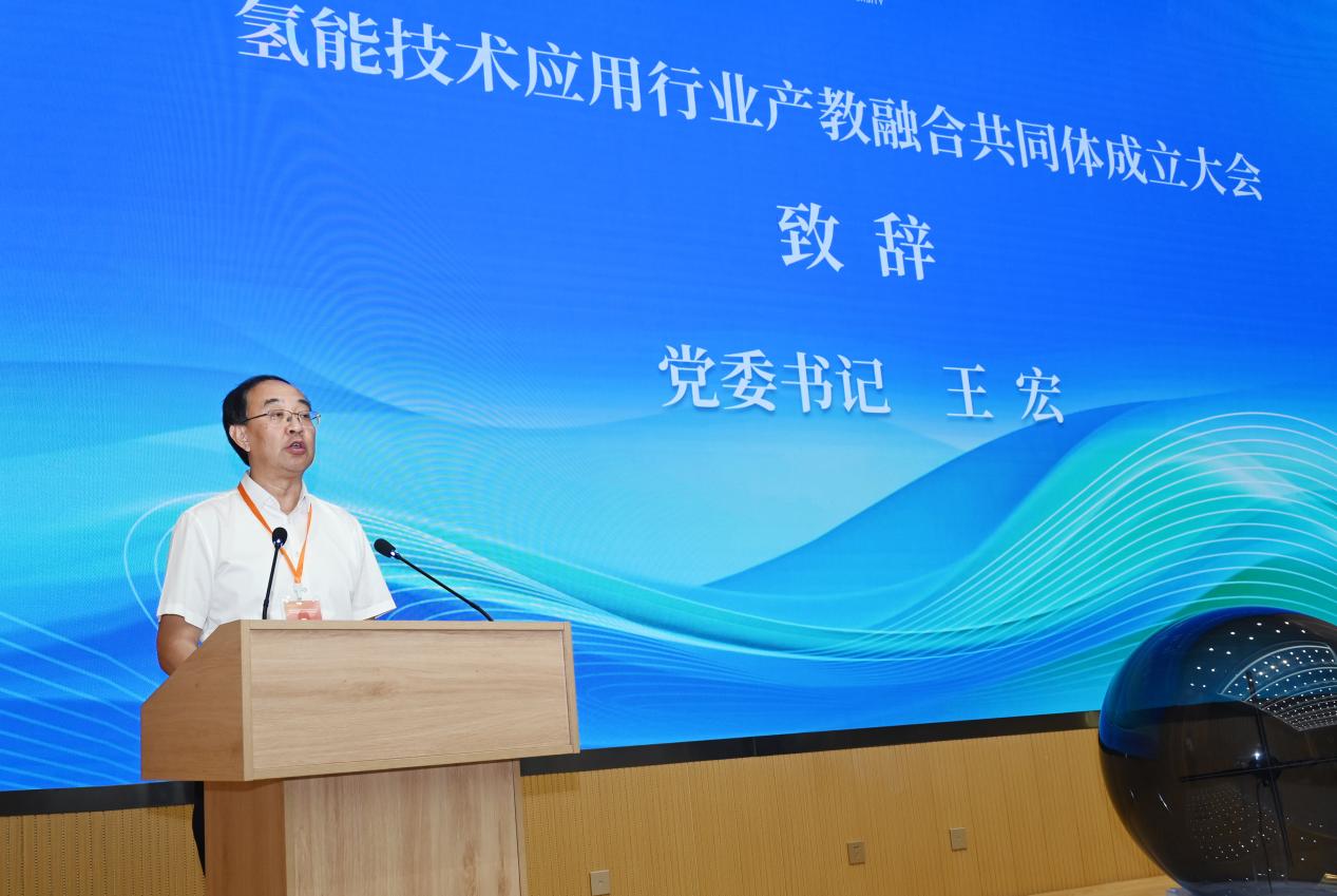 党委书记王宏在致辞中表示,共同体的成立是推动氢能应用技术产业创新链、人才链、产业链深度融合的战略行动,是落实甘肃省建设氢能产业“一个走廊、两个示范区、两个基地”布局的重要举措,是武威市坚持绿色低碳循环发展方向、加快构建现代产业体系的生动体现。学校将秉持“开放合作、资源共享、互利共赢”的原则,与各成员单位携手并进,深化“四个合作”,推进“五金”建设,共同探索氢能应用技术领域高技能人才培养新范式,为氢能产业高质量发展和现代职业教育体系建设提供强有力支撑。
