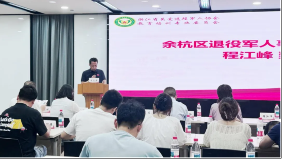 余杭区退役军人事务局副局长程江峰为本次沙龙活动致辞,对关心支持退役军人工作的社会各界组织和单位表达了感谢,用余杭退役军人创业的先进案例激励大家,并希望参加培训的学员珍惜机会、学以致用,敢闯敢拼、勇当先锋,凝心聚力、共促发展,为余杭发展注入新活力。