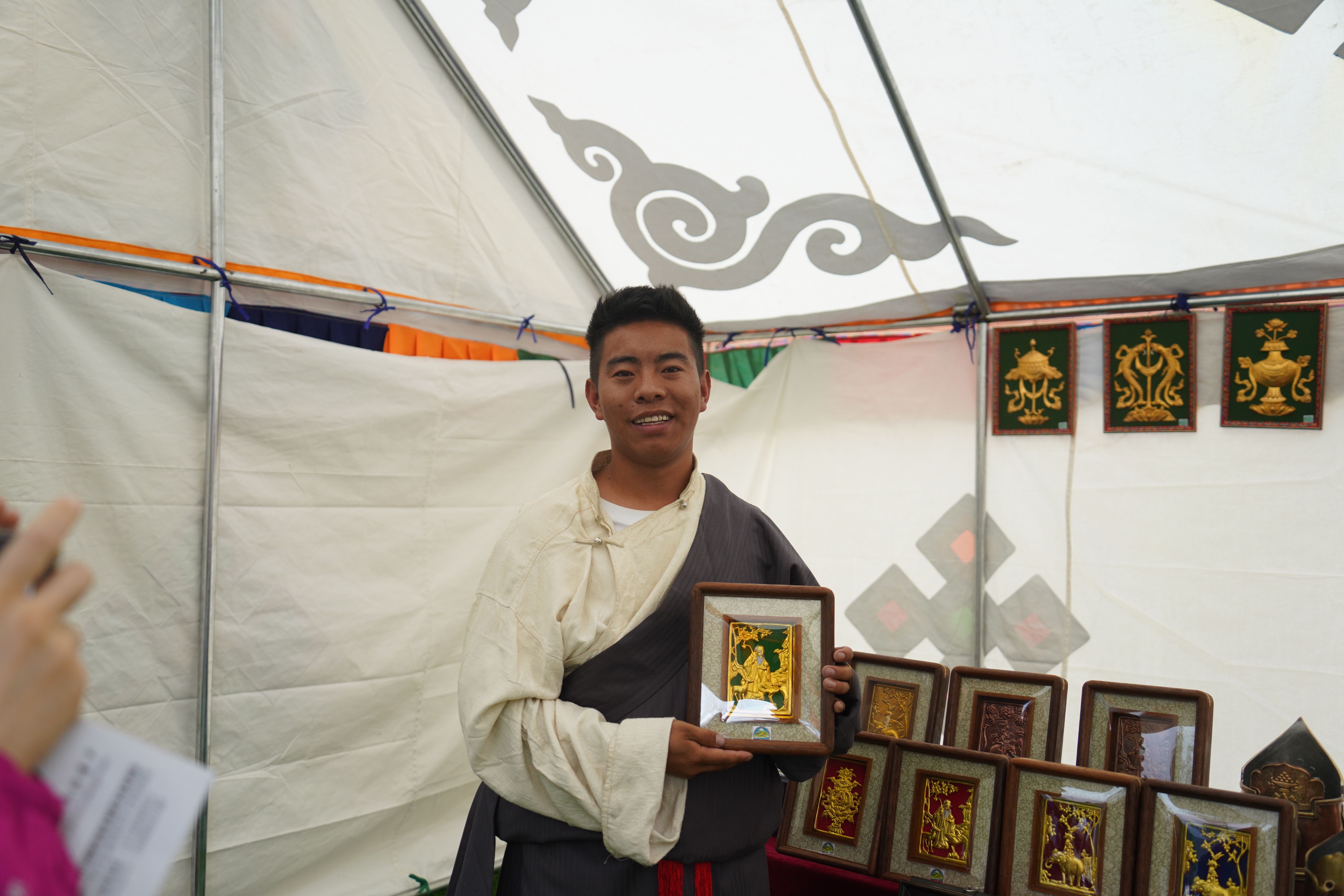 ▲西藏自治区第六届劳动模范索朗一家和他们的作品。中国网记者胡俊 摄