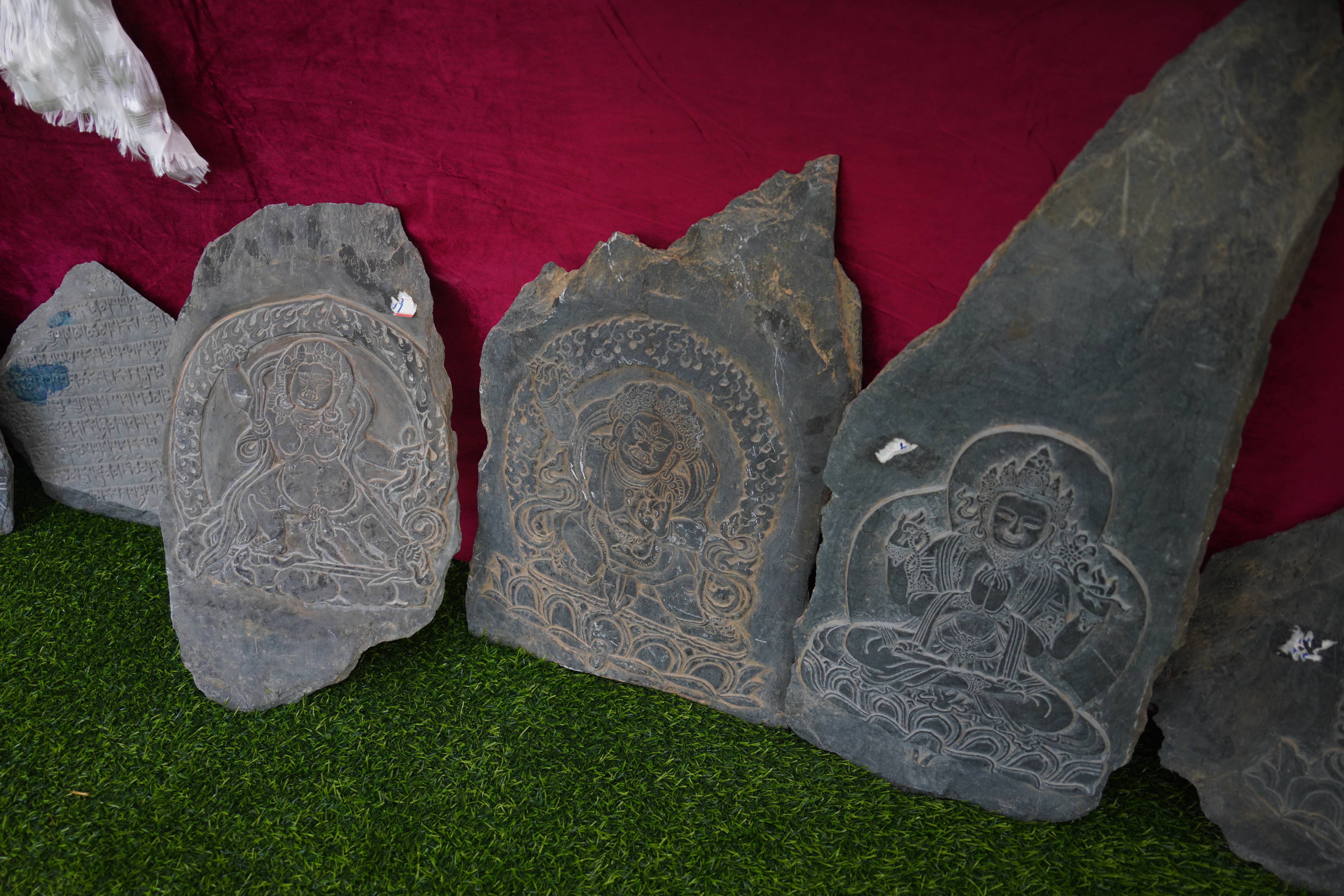 “非遗赋能 匠心传承”展示现场,一组工具引起了记者的兴趣,自治区级非遗项目“西藏叶如石刻技艺”市级传承人扎西顿珠介绍,这组工具是雕刻石头用的,已经有300多年历史了,雕刻的内容多与佛教相关的经文、图腾等。如今这项技艺也得到了妥善的传承和保护。
