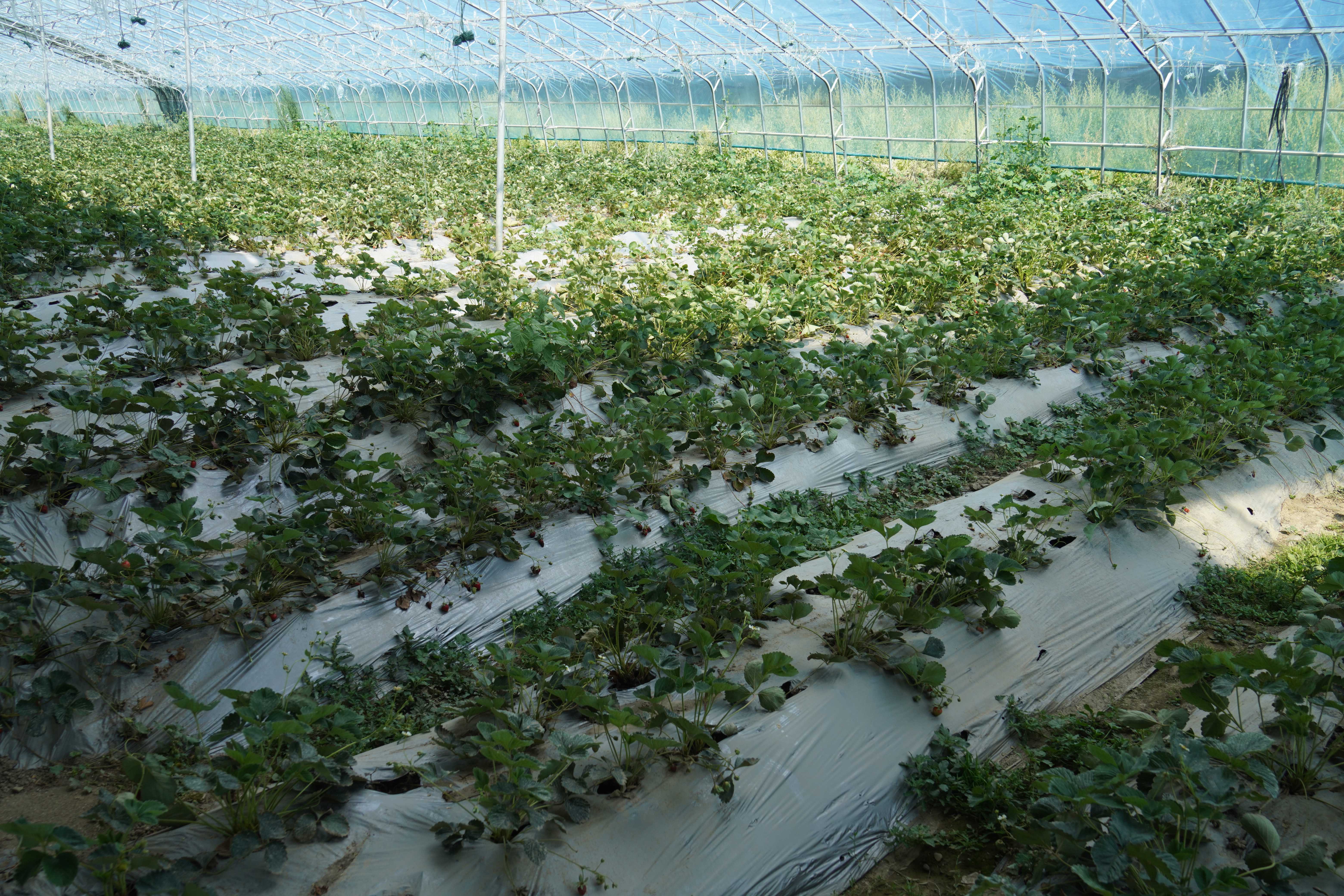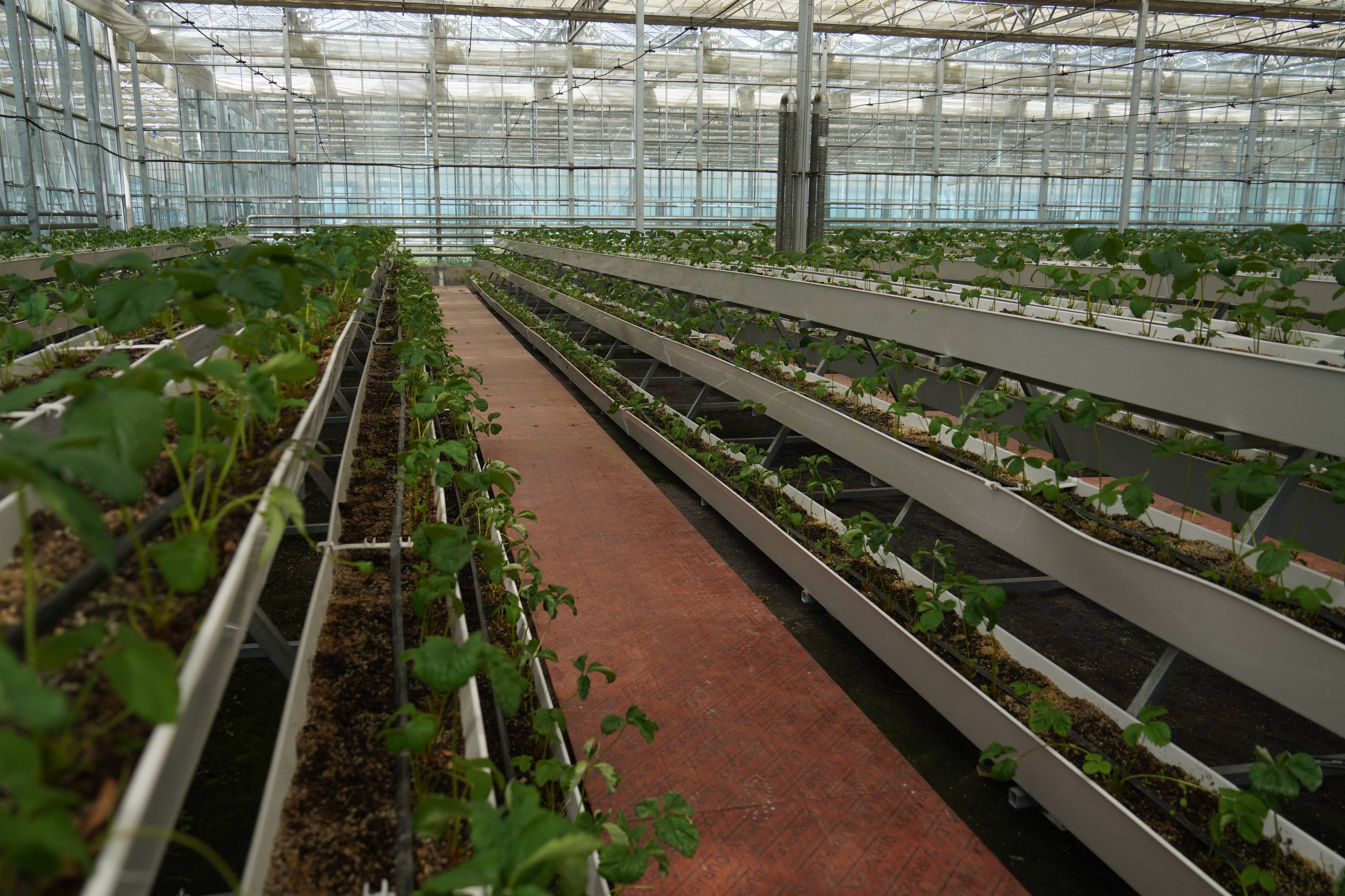 ▲白朗县珠峰现代农业科技创新博览园里培育的草莓。中国网记者胡俊 摄