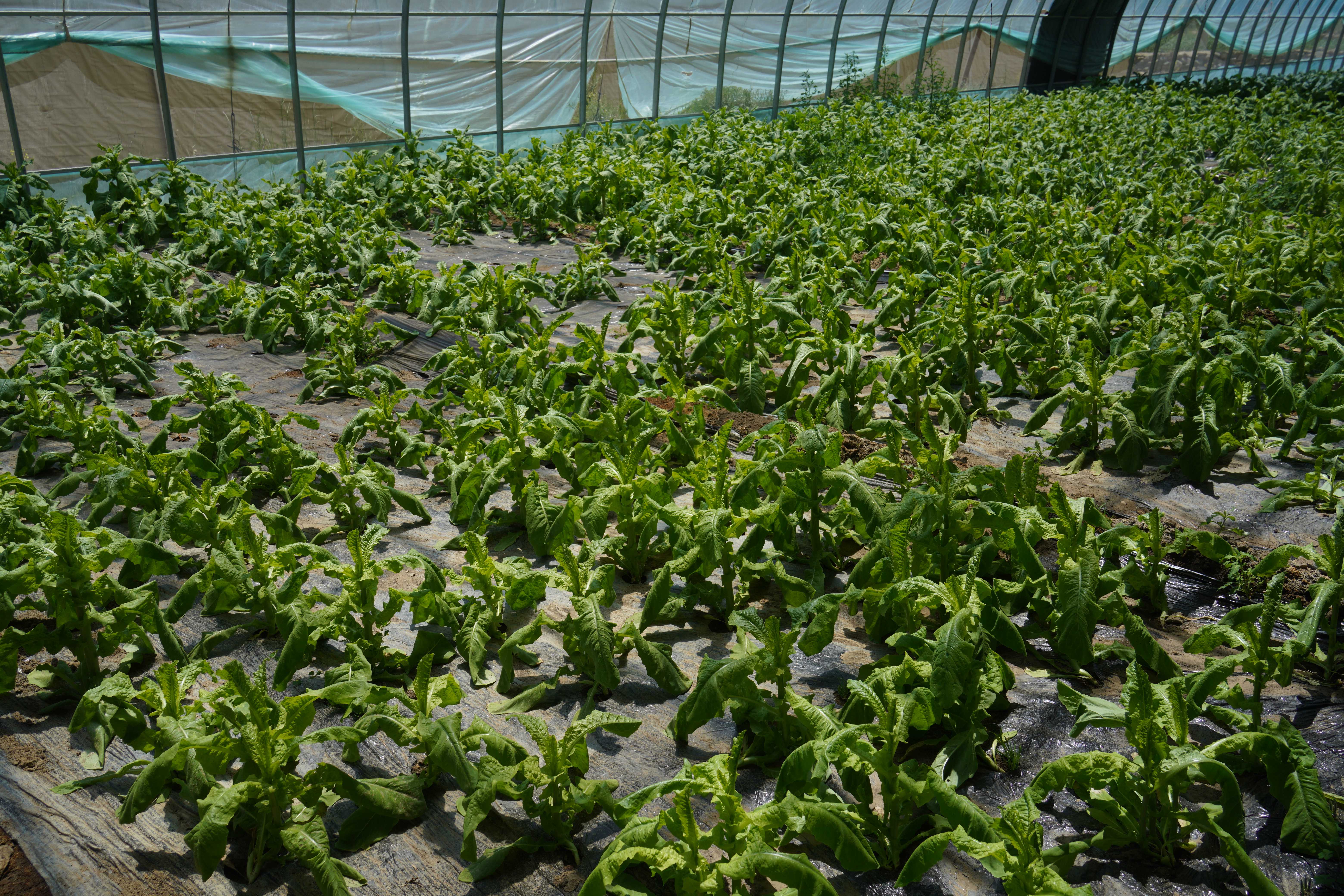 ▲白朗县阿亚村温室大棚培育的高原苔菜。中国网记者胡俊 摄