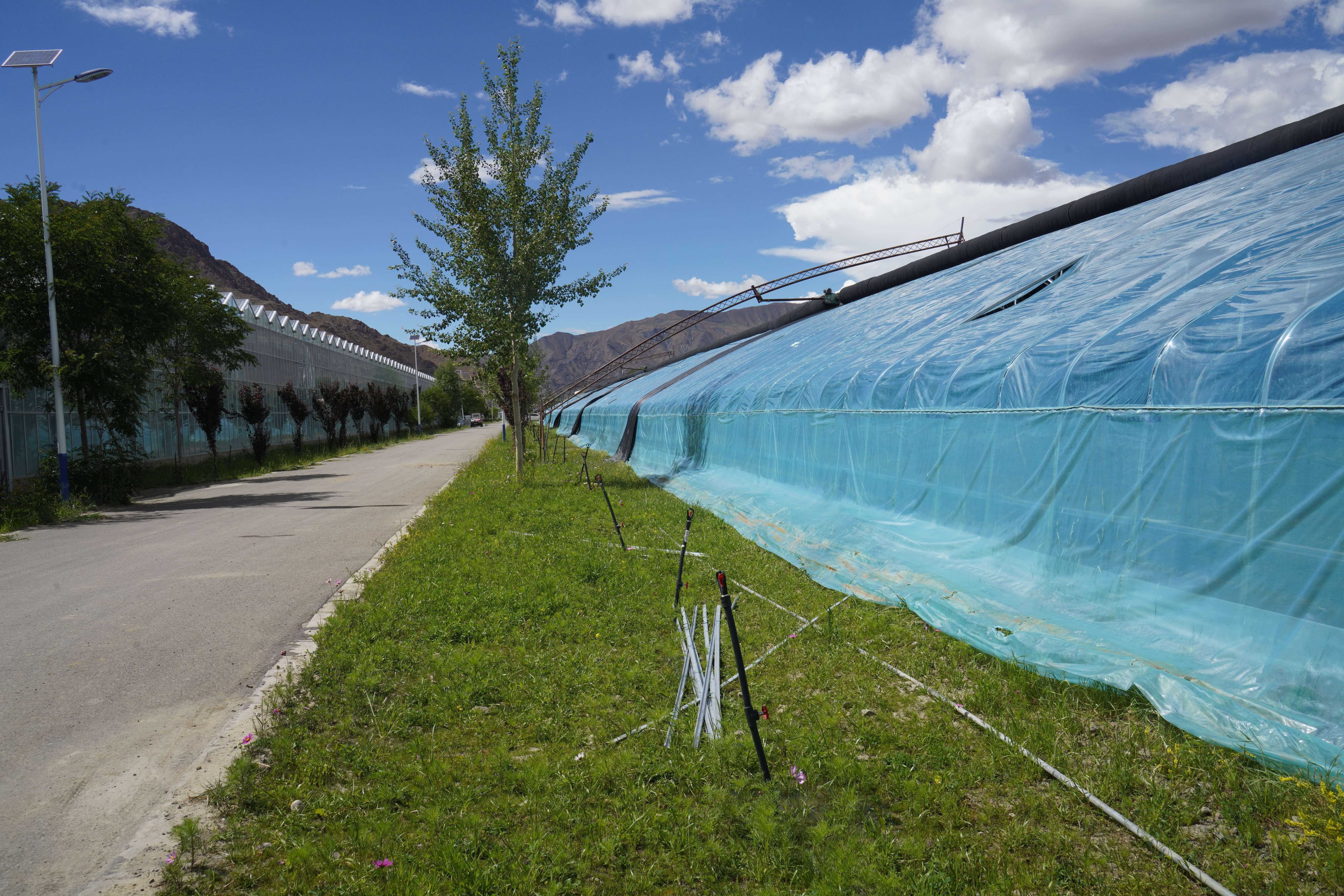▲白朗县珠峰现代农业科技创新博览园温室大棚。中国网记者胡俊 摄