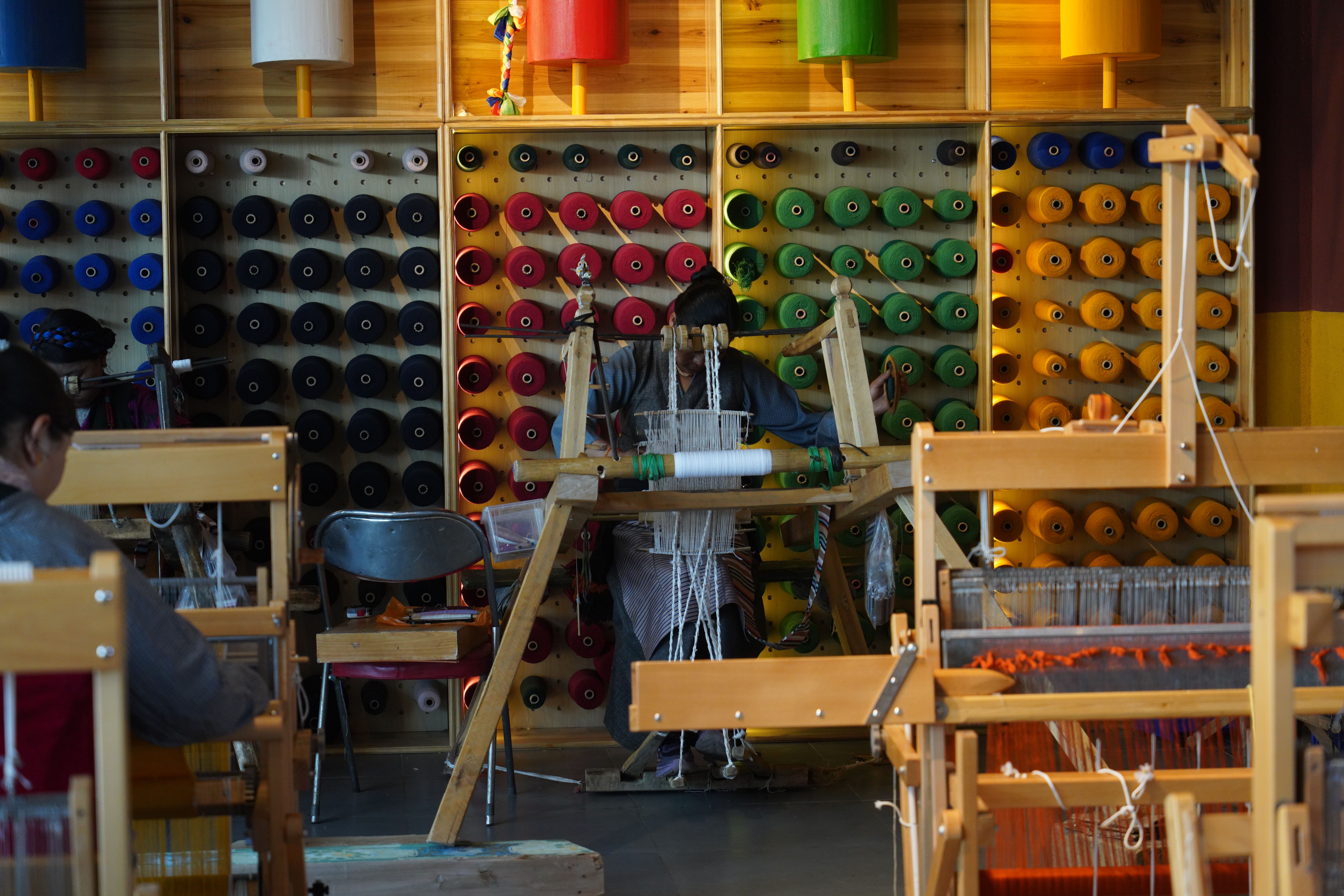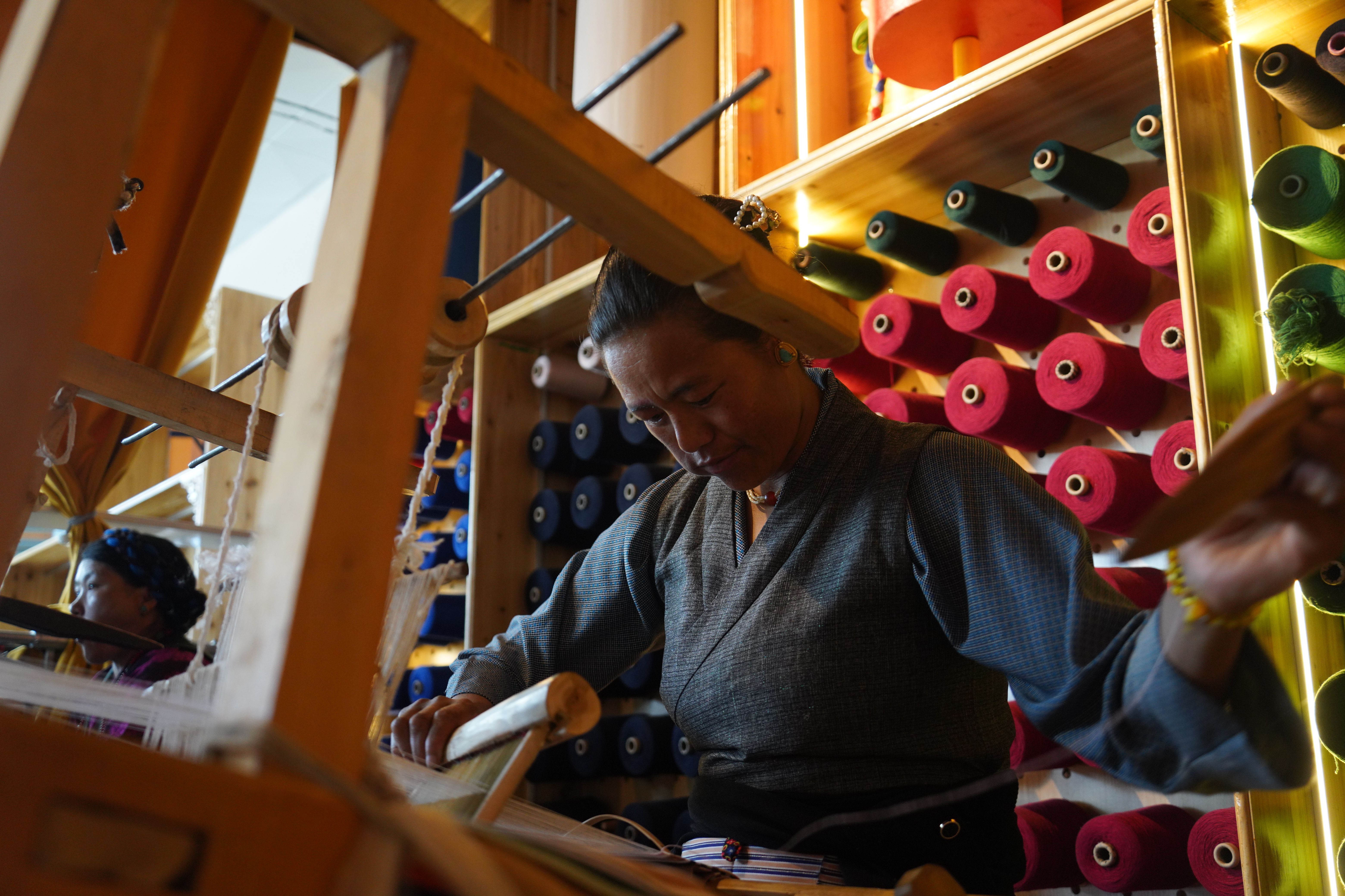 记者走进“阿佳格桑工坊”时,多彩的羊毛线正在木质的织布机上飞速穿梭,一件件精美的手工氆氇正从这个高原小工坊,走向世界大舞台。而氆氇这项千年技艺在新时代援藏建设背景下,被重新定义。