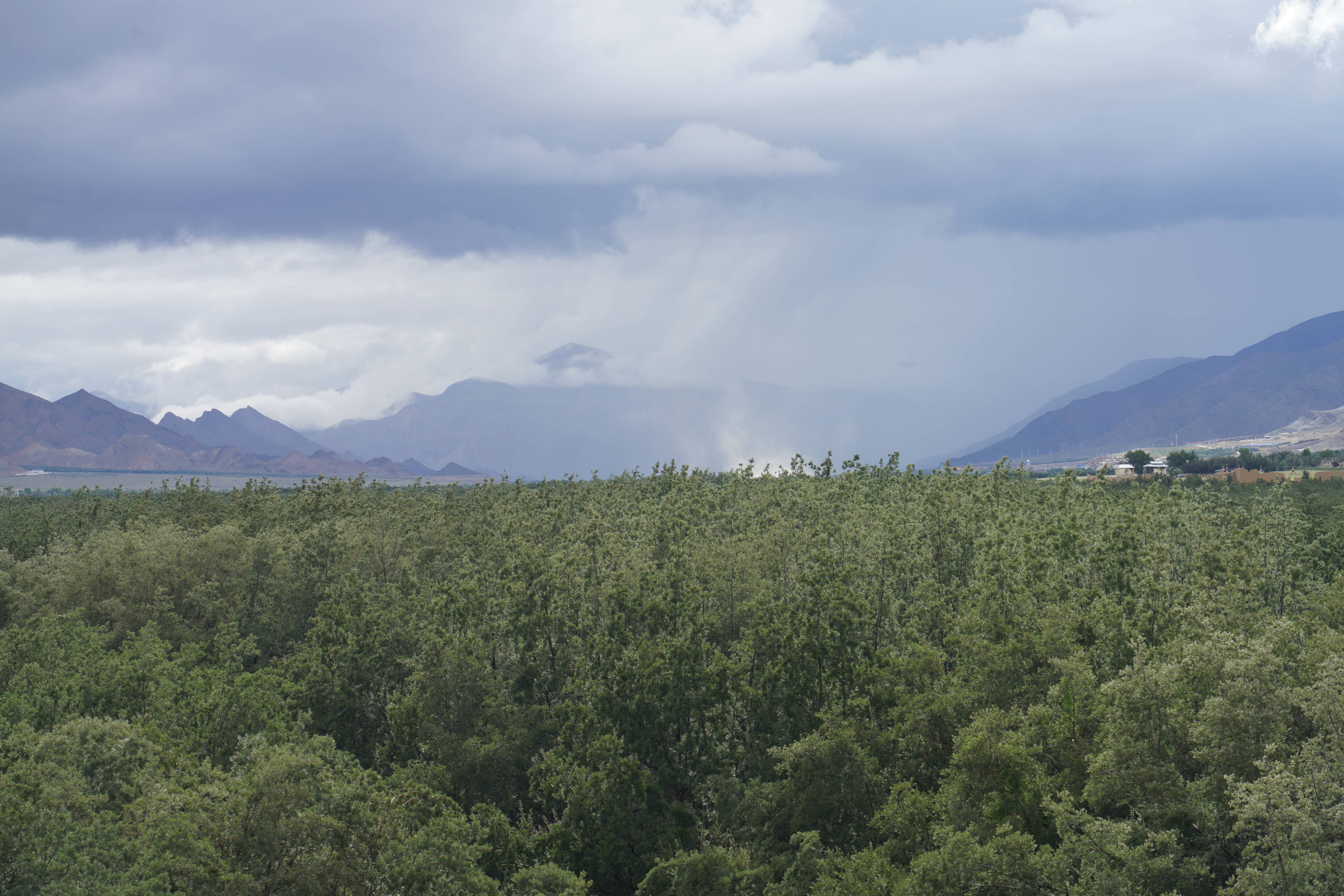“上世纪60年代,隆子河谷流传着一句俗话:‘聂巴阿贴组’,意思是‘只要你说话,身上的沙土就会往下掉’。”巴桑次仁脚下的土地,曾是一年近8个月沙尘肆虐的荒漠。1964年,时任新巴乡乡长朗宗带着群众试种5种树苗,只有沙棘活了下来。“这一种就是60年,现在成了50.33平方公里的绿洲,创下了世界纪录。”