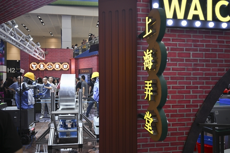 这是7月26日拍摄的装饰具有上海特色的人工智能展区。