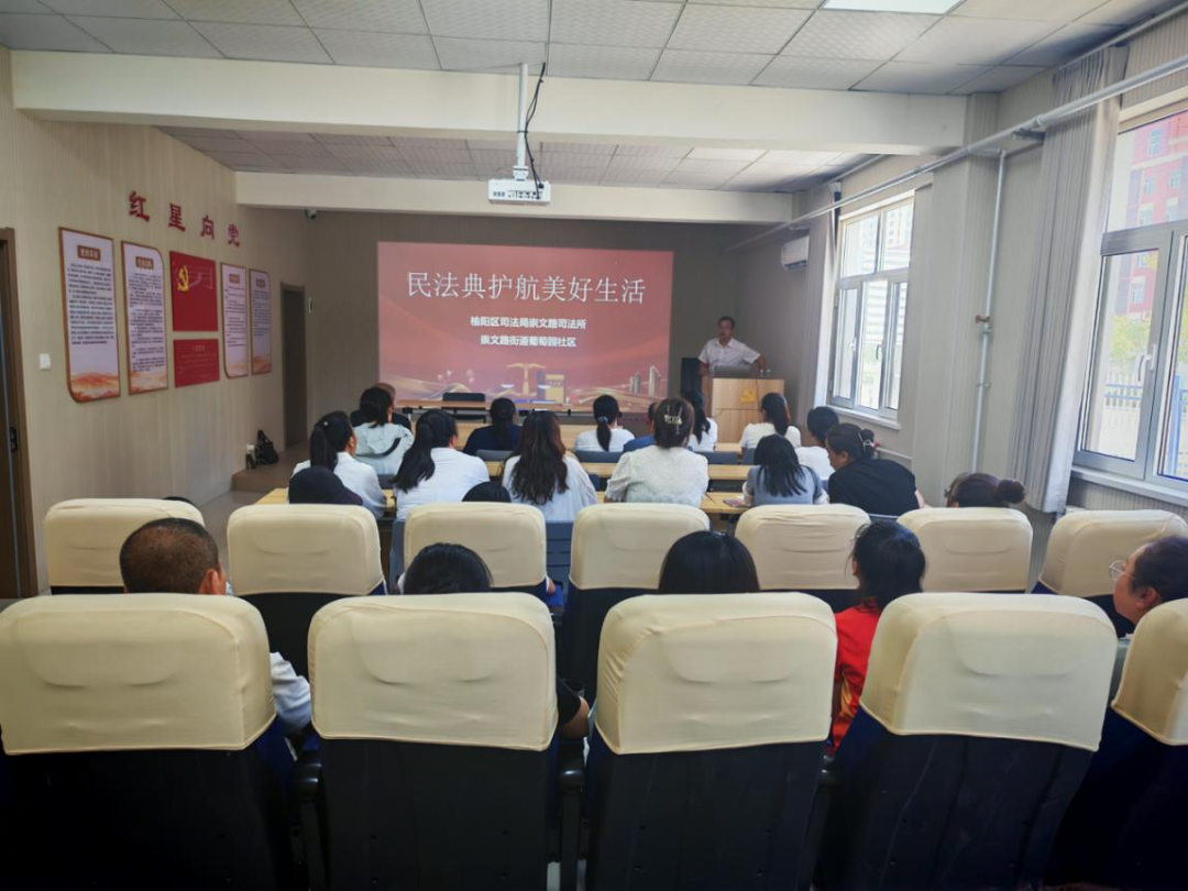 近日,陕西榆阳区崇文路街道葡萄园社区举办“民法典护航美好生活”主题大宣讲活动。活动邀请崇文街道办事处资深法律顾问何明明担任主讲,吸引了众多社区居民热情参与。
