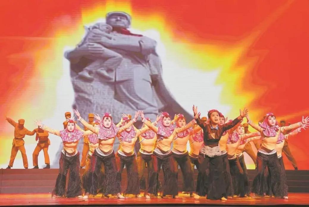 在今年泉州举办的庆祝“八一”建军节文艺晚会上,舞蹈演员们生动演绎崇武解放军烈士庙背后军民鱼水情的故事。 张九强 摄