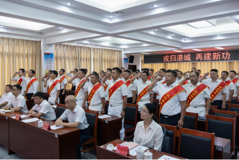 转业军官代表吴灿庄严承诺:“退役不褪色!我们将以新兵姿态再出发,全力融入港城建设!”在吴灿带领下,全体转业军官高举右手进行退役宣誓:“永葆军人本色,为军旗增辉,为军队争光。若有战,召必回!”誓言回荡会场,雄浑激昂的《中国人民解放军军歌》奏响,为军旅生涯画上句点,也为新征程吹响号角。