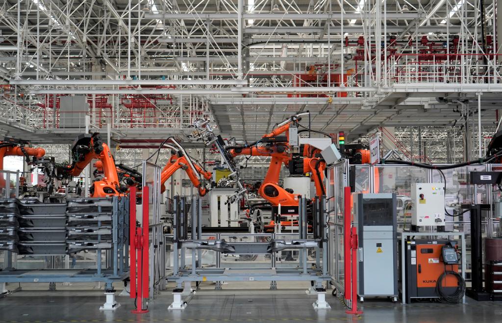 这是湖南省长沙市三一智联重卡产业园内的生产场景。新华社记者 余春生 摄