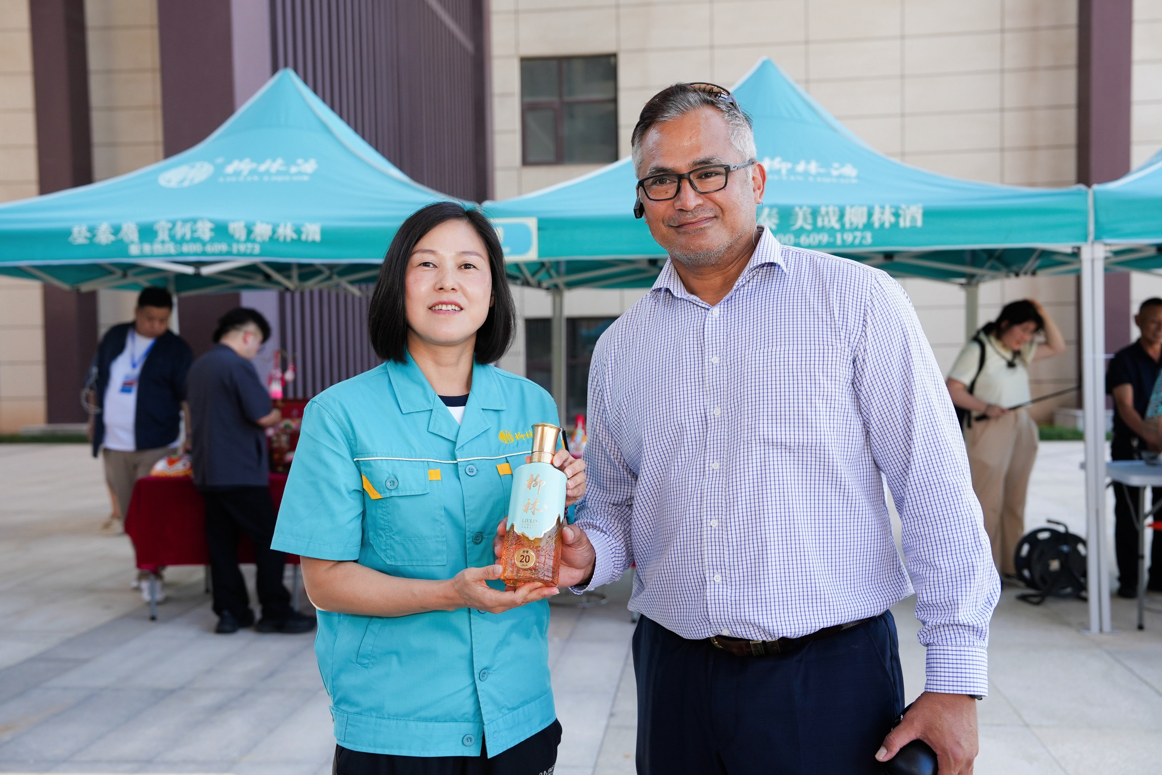 在互赠礼品环节,卢阿马努韦·马里纳向柳林酒业赠送了萨摩亚文化中象征着首领的身份和地位、被称为“酋长花环”的“乌拉法拉”。付小铜回赠柳林“酒海香”纪念酒。尼泊尔驻华公使帕尔巴蒂·阿里亚尔向柳林酒业赠送了尼泊尔的国礼——以斯瓦扬布纳特寺为原型制作的文创产品,付小铜回赠国家级非物质文化遗产——凤翔泥塑。互赠礼物不仅体现了文化互鉴,更展现了双方合作的美好愿景,同时也让柳林“酒海香”成为中外文化交流的纽带,象征着国际友谊天长地久。