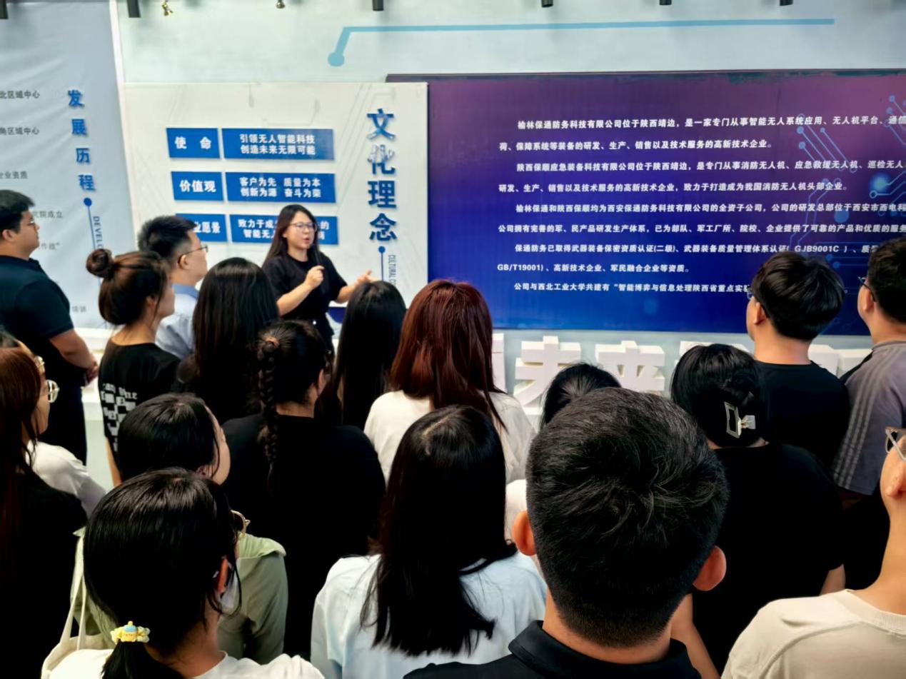 从田间地头转向工业车间,榆林市保通防务科技有限公司的无人机生产车间内同样洋溢着青春活力。青年们认真聆听企业负责人介绍靖边低空经济产业布局与企业发展概况,在生产车间与多类型无人机模型前驻足细看,深入了解无人机在农林植保、应急救援等领域的创新应用。当听到“这架植保无人机每小时可作业300亩,效率是人工的20倍”时,青年们更是惊叹不已,深刻感受着靖边无人机产业蓬勃发展的态势与广阔前景,大学生刘宣祯拿起无人机部件仔细观察后感慨:“没想到家乡已站上低空经济赛道前沿,这里的发展机遇值得我们学成归来深耕。”