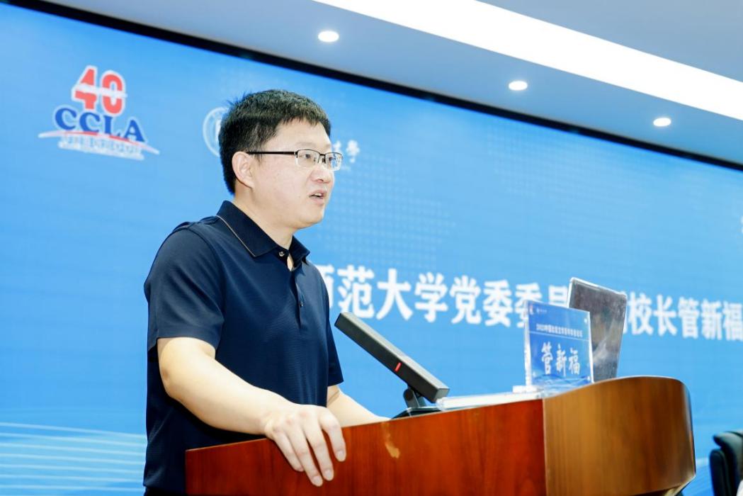 管新福在致辞中介绍了贵州师范大学的办学历史与发展现状。他指出,本次论坛以比较为舟、以文学为楫,围绕“AI时代的比较文学与世界文学”这一主题,深入探讨文学的命运与人类精神家园的守护和创新。面对人工智能技术所带来的深刻变革,应当以开放而审慎的态度迎接技术带来的机遇,以算法为工具深入探索,同时坚守人文精神的价值内核。他希望青年学者们能在此激扬文字、碰撞思想、交流智慧、建立友谊、共启未来,携手谱写AI时代比较文学与世界文学研究的崭新篇章。