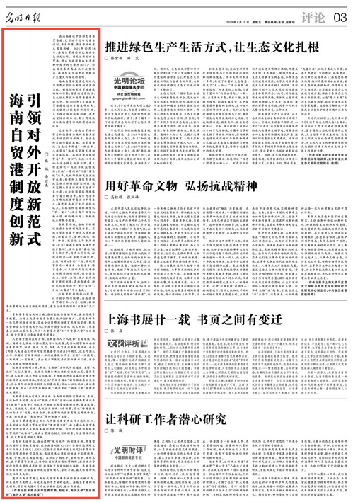 海南自贸港建设是新时代中国制度型开放的示范和标杆。全岛封关运作是自贸港建设的“里程碑工程”,标志着海南自贸港制度型开放进入系统性集成创新新阶段。作为对标国际高标准经贸规则“试验田”,海南自贸港的制度创新探索,为全国深化改革、扩大开放提供制度模板。