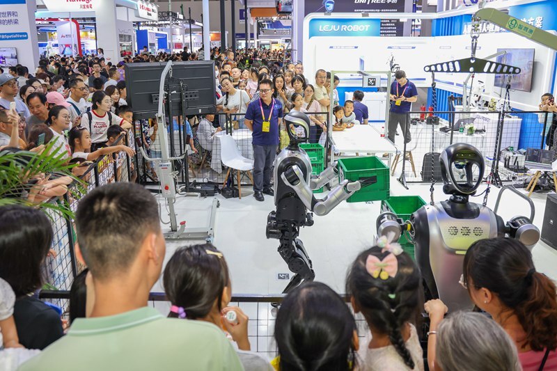 9月5日至8日,2025世界智能产业博览会在重庆举行。众多人形机器人在智博会上亮相,为观众带来不少乐趣。