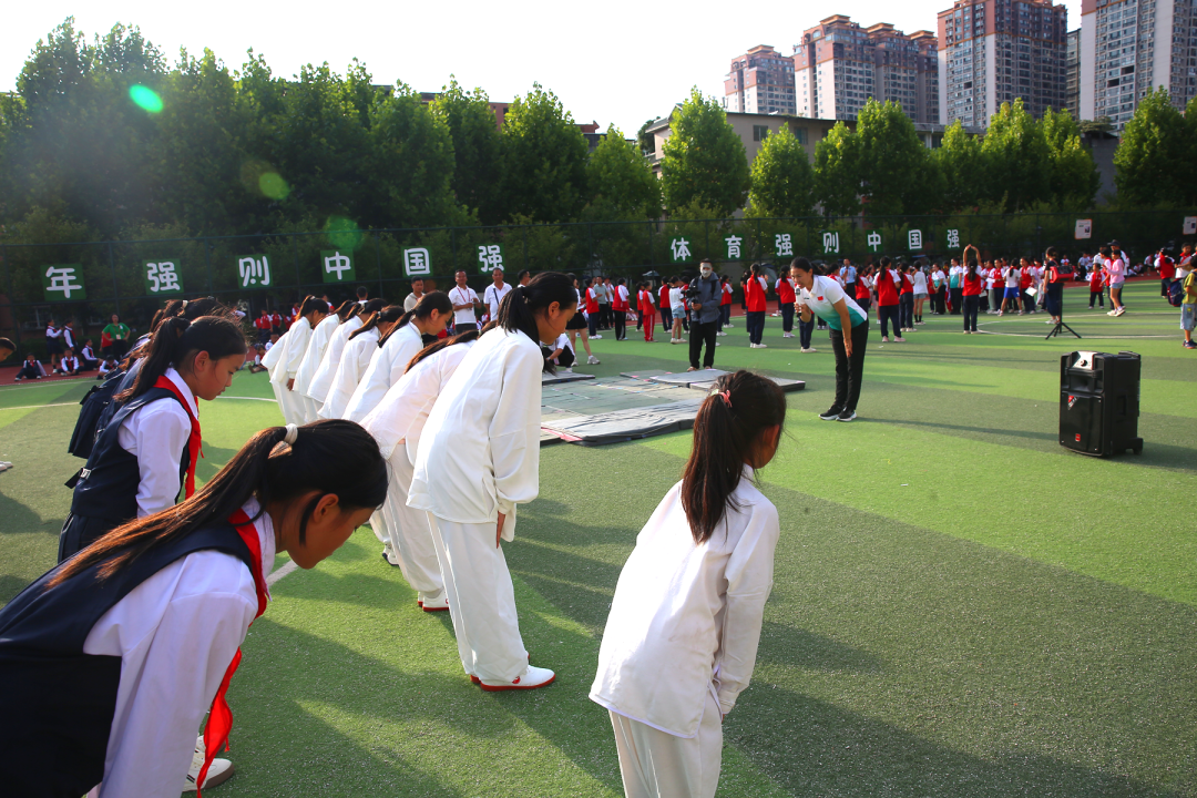 活动还设置了趣味十足的“体育大课间”。孩子们展示了啦啦操、民族舞、篮球操等节目后,冠军们分组带领学生进行体育体验。