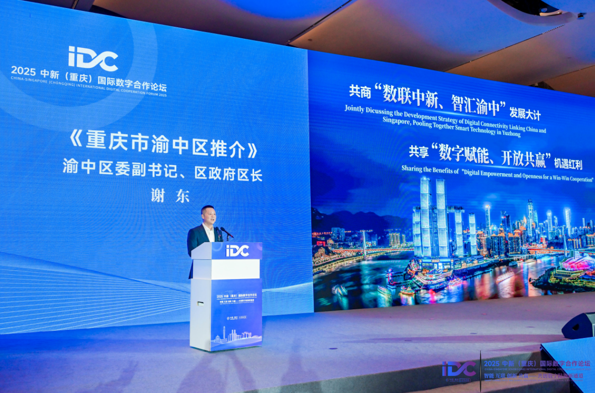 渝中区区长谢东介绍,近年来,渝中积极投身数字蓝海,推动“通道+经贸+产业”与数智AI双向赋能,将全力打造具有渝中辨识度、全国影响力的中新互联互通项目核心承载区、西部国际数据合作门户,聚力打造通江达海、走向全球的数字经济“新引擎”。