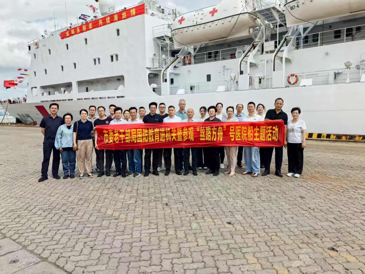 随后,该局参观了海军“丝路方舟”号医院船。作为我国重要卫勤保障力量,海军“丝路方舟”号医院船不仅满载排水量与续航能力稳居领先地位,更按照三甲医院标准配备了完善的医疗设备,综合保障能力卓越。舰艇官兵详细介绍了该船在海上医疗救护、岛礁巡诊、国际人道主义救援等任务中发挥的关键作用,以及在守护生命、捍卫和平、传播中华文化、推进“一带一路”倡议等方面肩负的重要使命。党员干部们深入舱室,近距离参观医疗设施,详细了解救援流程,深切感受到我国海军在维护国家主权、安全、发展利益以及履行国际责任中展现出的强大力量。