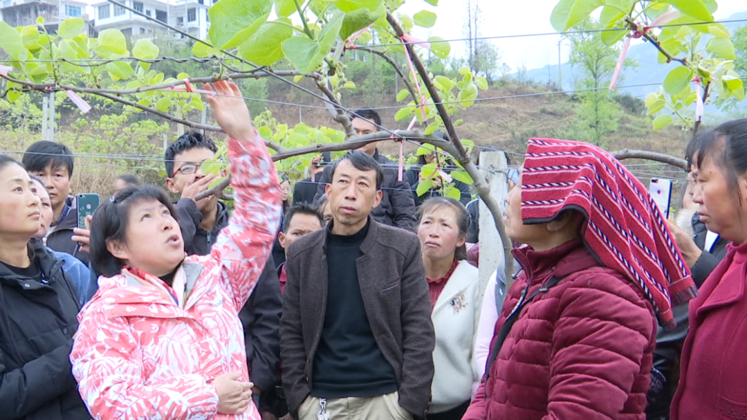 钟彩虹(左三)为水城区猕猴桃种植户开展技术培训。姜宁 摄