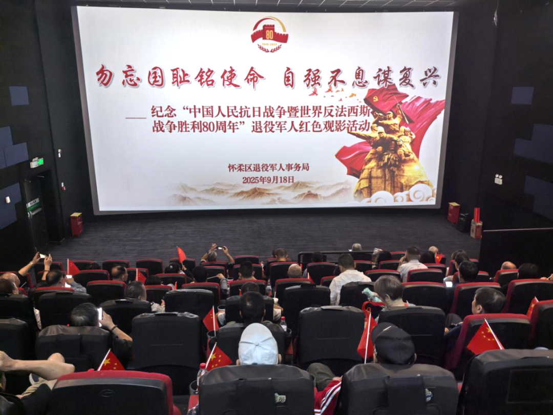 山河铭记历史,精神永续传承。为纪念中国人民抗日战争暨世界反法西斯战争胜利80周年,弘扬伟大抗战精神,9月18日上午,北京市怀柔区退役军人事务局以“勿忘国耻铭使命 自强不息谋复兴”为主题,组织全区近百名退役军人走进万达影城,共同观看电影《731》,在光影回溯中重温峥嵘岁月,在精神洗礼中凝聚奋进力量。
