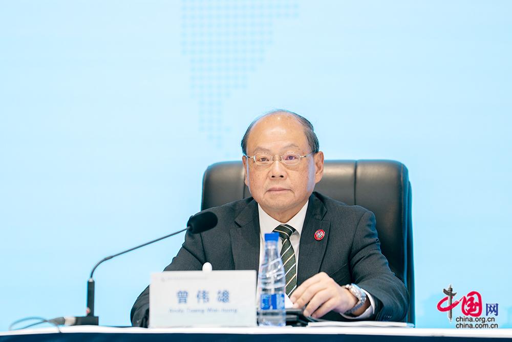 全球公共安全合作论坛(连云港)2025年大会主席曾伟雄介绍情况。 中国网 杨佳 摄影