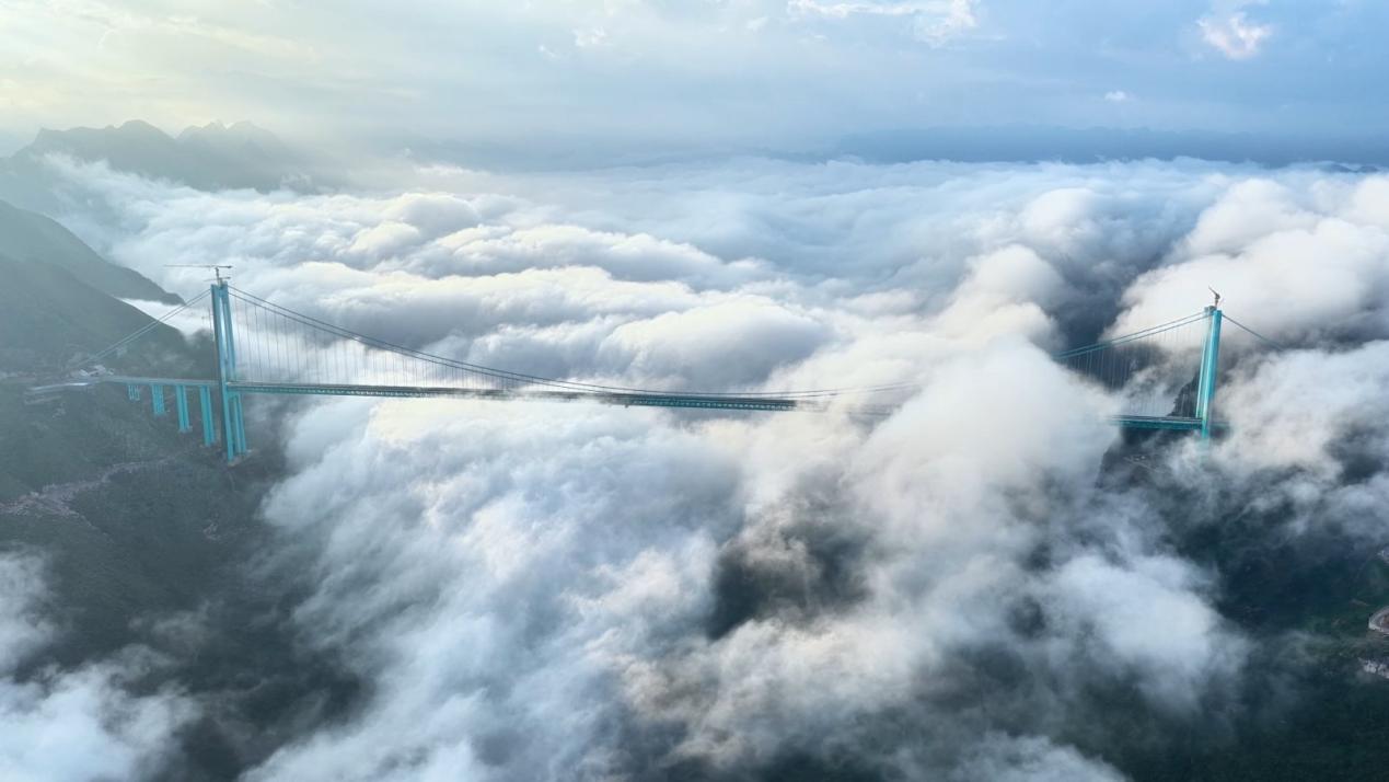 花江峡谷大桥不仅是一座物理上的高峰,更是一座展示中国创新能力的“标杆桥”。在抗风设计、高空施工等领域,大桥实现了多项技术突破,为全球山区桥梁建设提供了“中国方案”。大桥创新采用智能缆吊系统、2000兆帕级高强钢丝等先进技术,获得授权专利21项,多项技术成果纳入国家桥梁建设标准。在索股中植入的智慧缆索,犹如大桥的“神经系统”,可实时感知桥梁健康状态。同时,大桥始终坚持绿色发展理念,采用无人机航测技术减少植被破坏,创新使用建筑垃圾再生材料,安装风光互补照明系统,确保项目建设与生态环境保护相协调。截至目前,贵州已建和在建桥梁超过3.2万座,在世界高桥前100名中,贵州包揽了近半数席位,前3名均坐落于此。